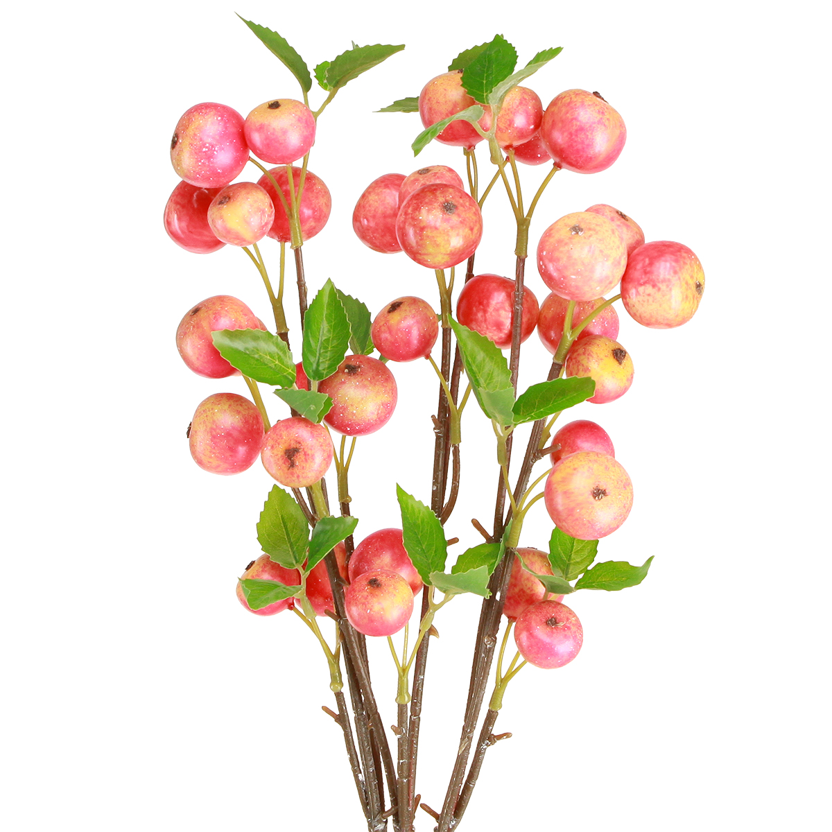 Ezek a szeretettel megtervezett műágak kis díszalmákkal élénk sárga és piros tónusokkal harmonikusan illeszkednek minden őszi dekorációba. A 2-3 cm átmérőjű díszalmák öt barna ágon kerülnek bemutatásra, fémmaggal, ami biztosítja a stabilitást és a sokféle díszítési lehetőséget. A zöld levelek teljessé teszik a természetes dizájnt, és a mesterséges almaágakat minden karbantartás nélkül állandó dekorációvá teszik.