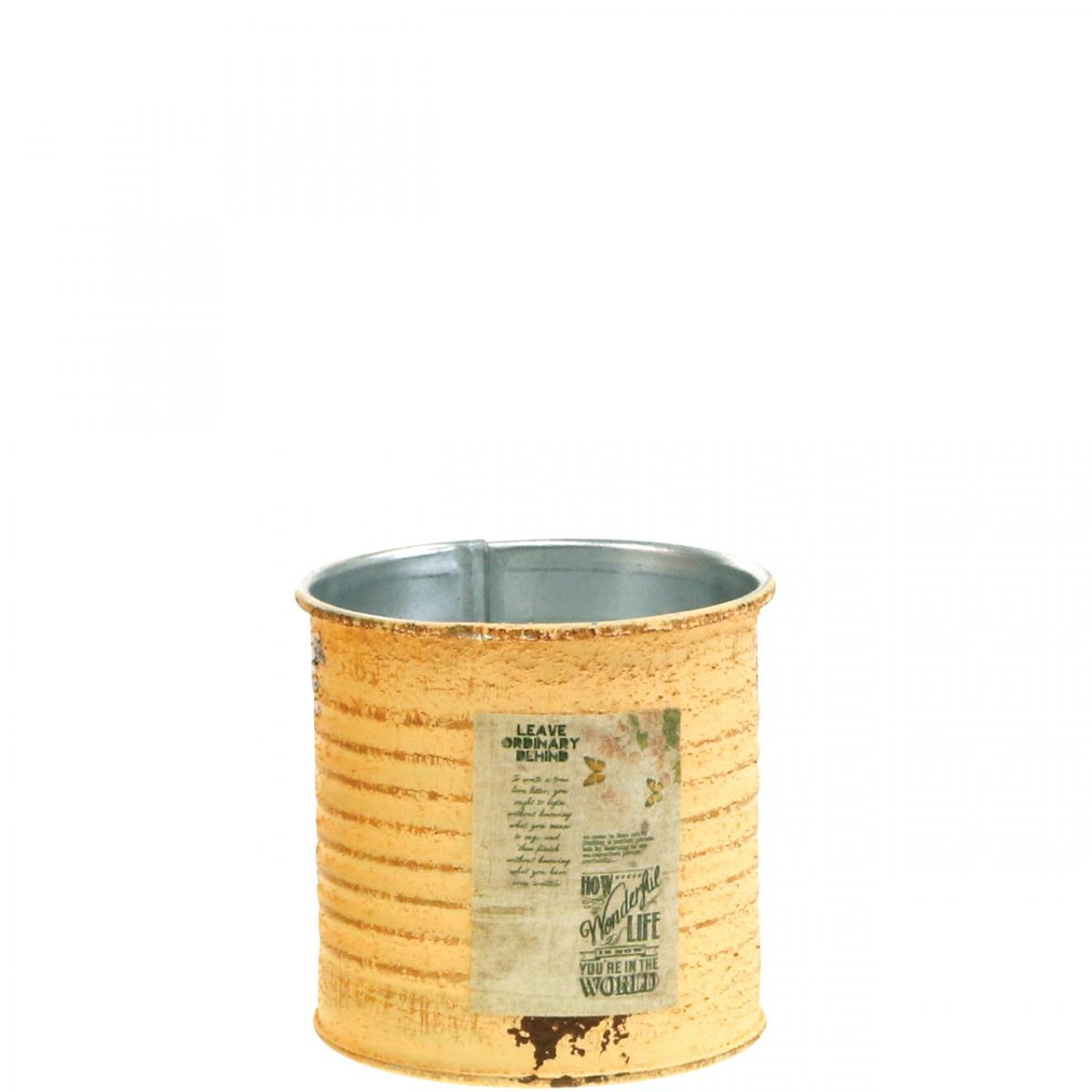 A világos sárgabarack színű, elegáns díszdoboz színt visz a nyárba. A fémdoboz kívülről rozsda hatású festékkel lett bevonva. A virágládára helyenként barna rozsdafoltok festettek. Egy vintage matrica teszi teljessé a mini virágcserép eredeti, nosztalgikus dizájnját.