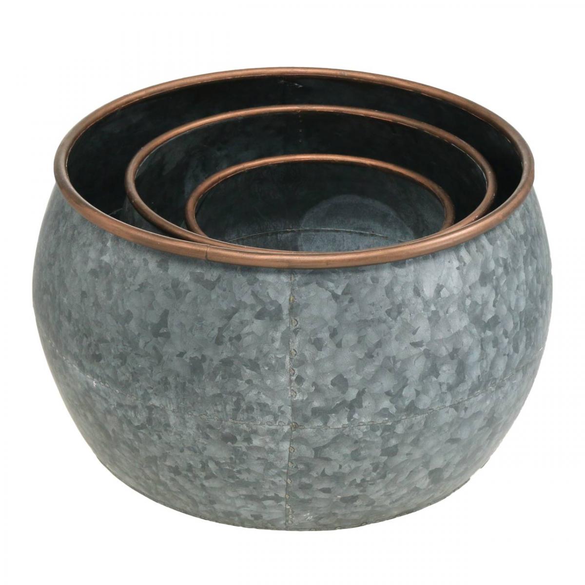 Díszedény, ültetőtál, fémedény ezüst, réz színű antik megjelenés H22 / 20,5 / 16,5cm Ø39 / 30,5 / 25cm 3 db-os készlet