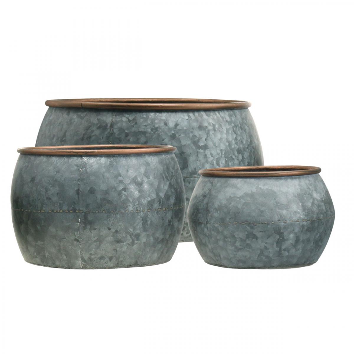 A kerek ültetőtálakat kibélelhetjük fóliával, hogy közvetlenül ültessük, vagy virágcserepet is rakhatunk bele. A rusztikus cink edények ideálisak mindenféle ünnepi alkalom elrendezéséhez is.