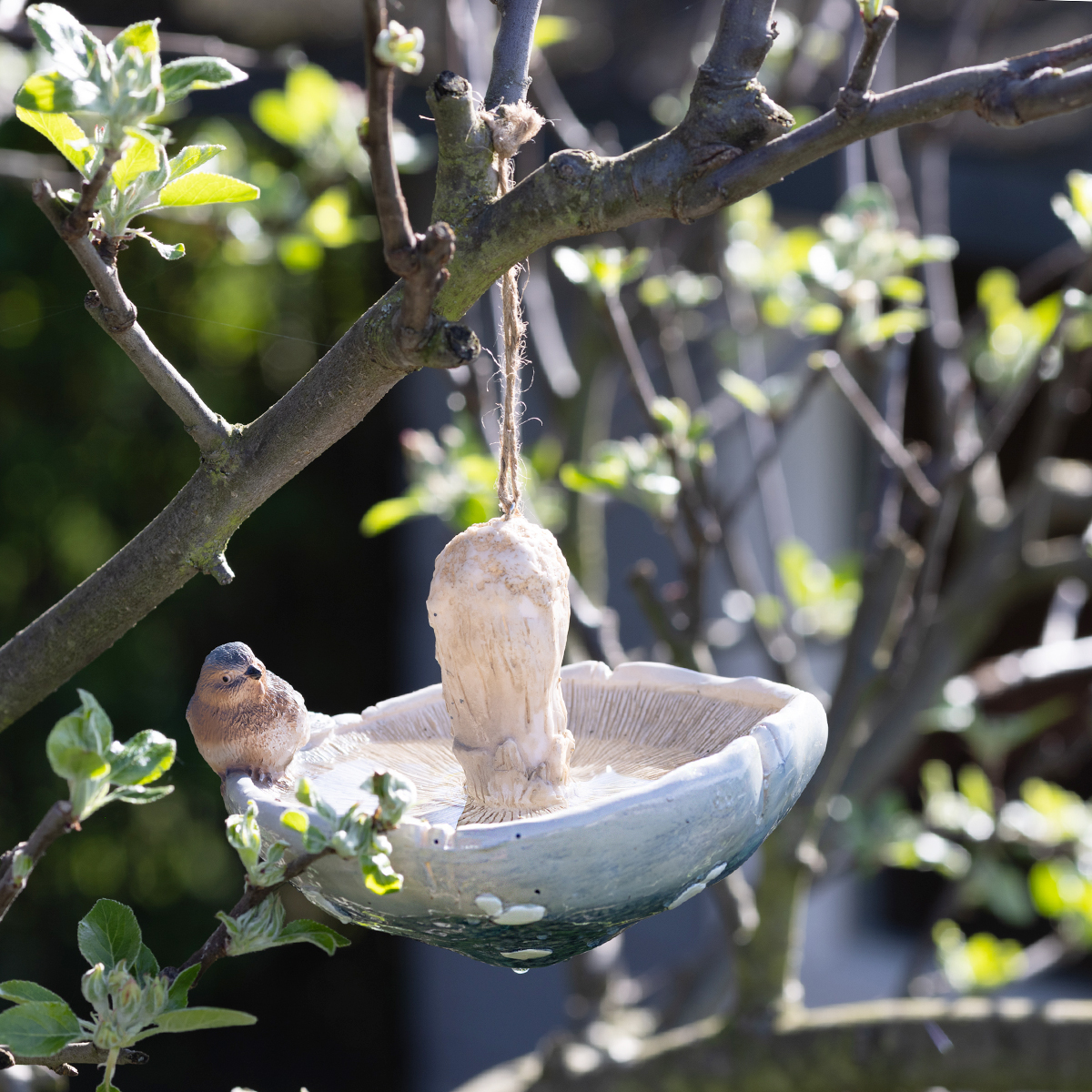A madár és a gomba belseje igényesen, kézzel festett. A függő dekorációhoz juta zsinór is tartozik, amelyre felakaszthatod a díszgombát.