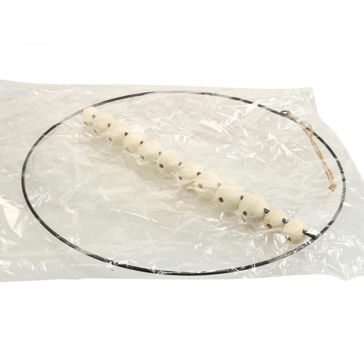 Díszgyűrű, fém, fa gyöngyök, Ø30cm, fekete, fehér, natúr, 4 db-os készlet