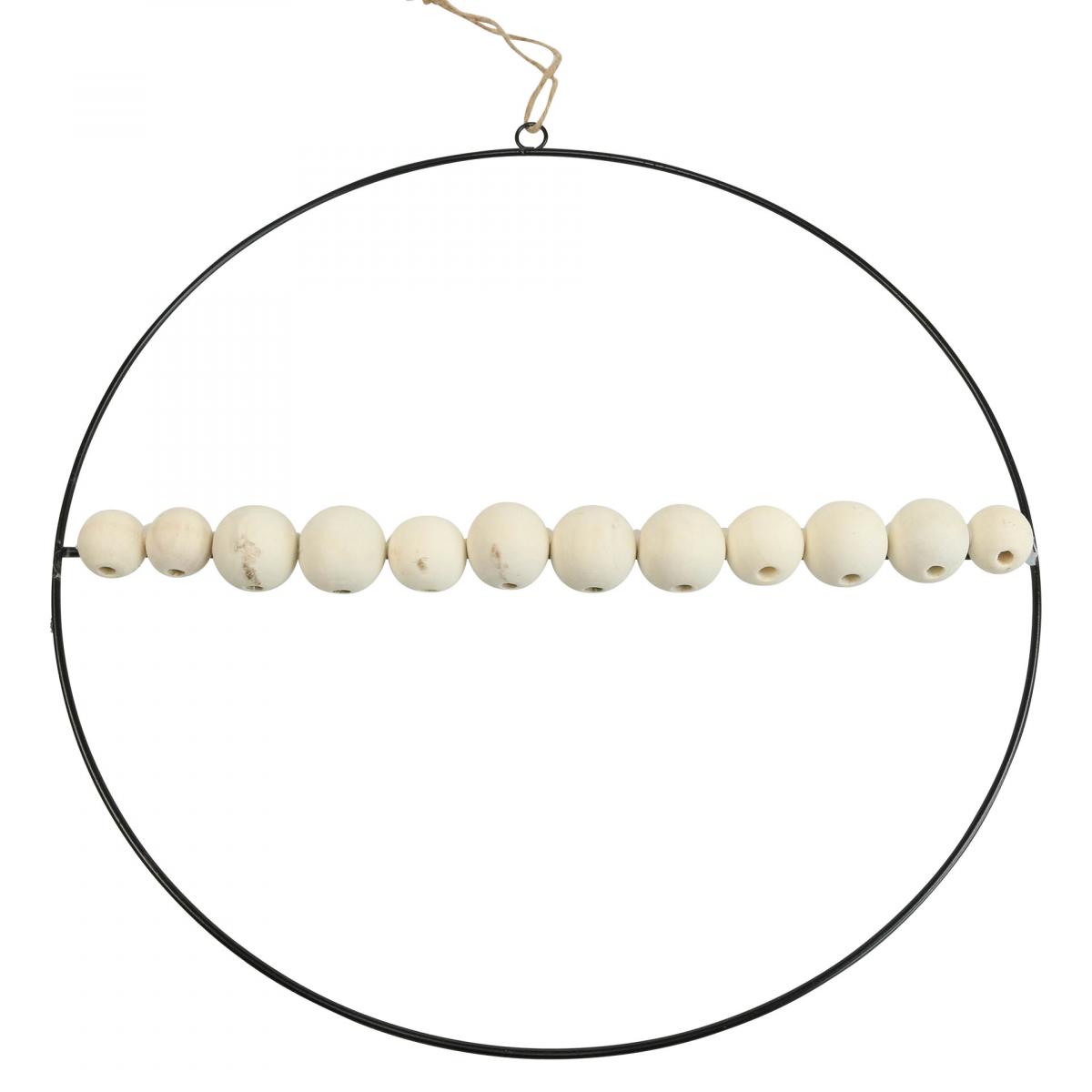Termék neve: Díszgyűrű, fém, fa gyöngyök, Ø30cm, fekete, fehér, natúr, 4 db-os készlet