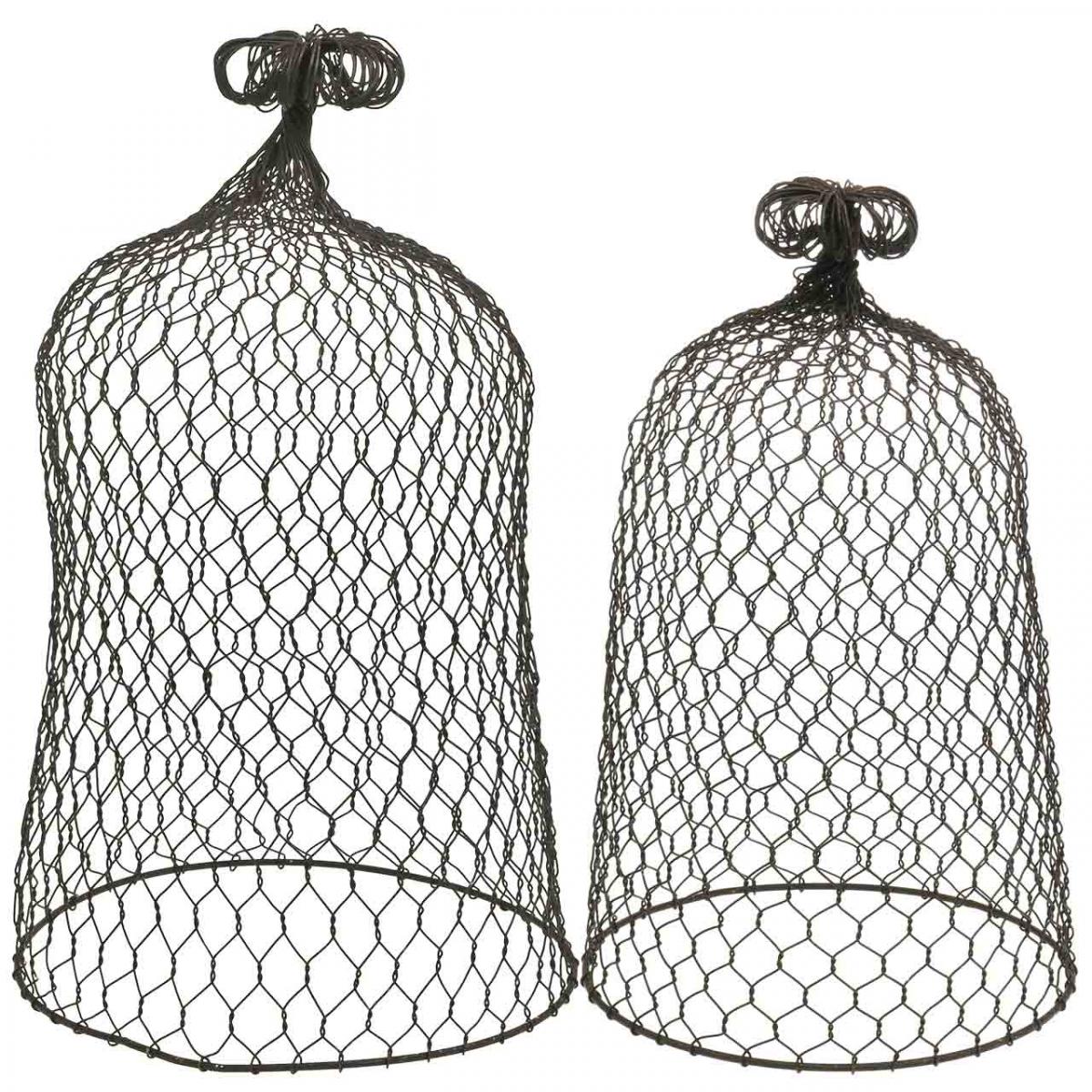 Díszharang fémből, mászást segítő, drót kapucni barna, patina H50/41cm Ø30/25cm, 2 db