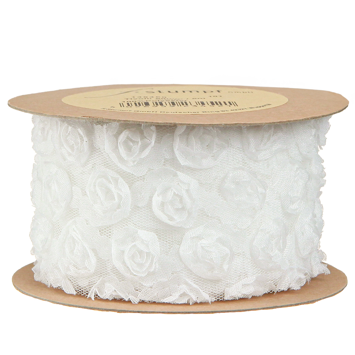 - Finom, áttetsző hálós szalag fehér rózsákkal