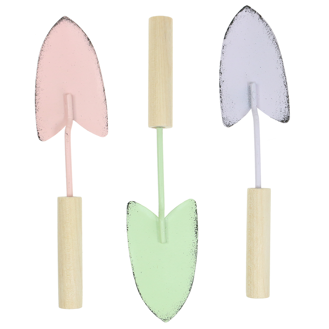 A színesen válogatott dekoratív lapátok fémből készültek, a nyél fából készült. Körülbelül 14 centiméteresek, és 9 darabos készletekben kaphatók. Ide tartoznak a zöld, rózsaszín és lila színű példányok.