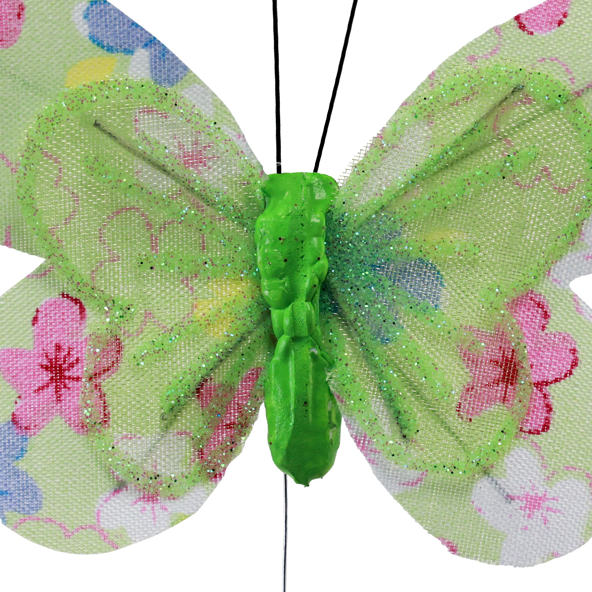 Termék neve: Díszlepkék dróton sárga zöld virágok 6×9cm 12db