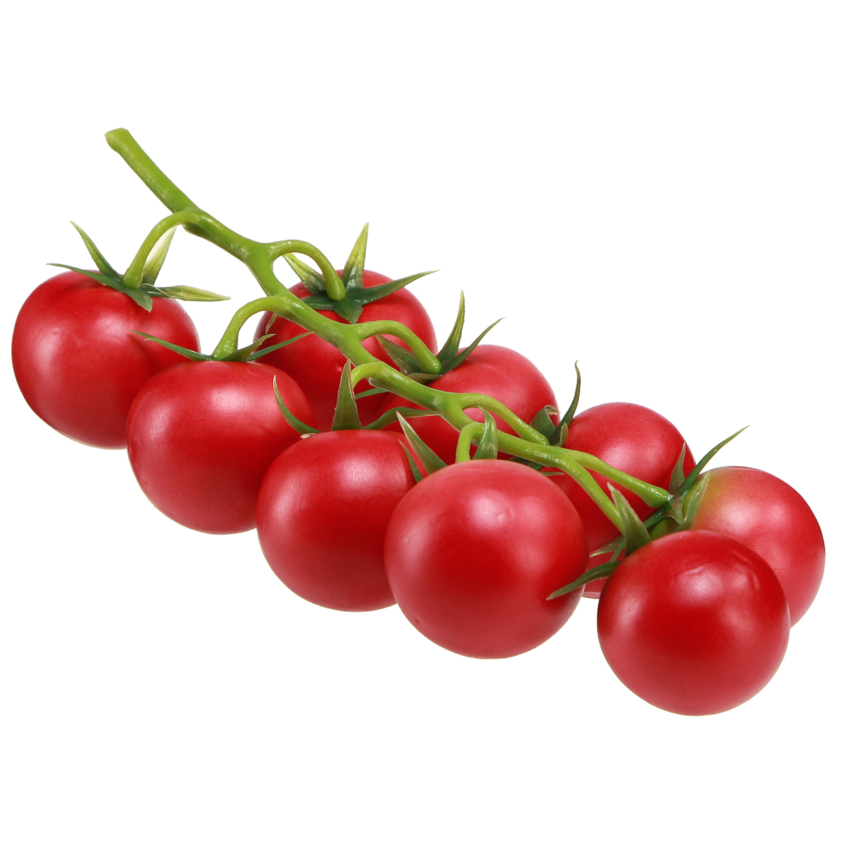 Műparadicsom szeleteink tökéletes kiegészítői éttermének vagy kirakatának. Körülbelül 3,5 cm átmérőjűek, ideálisak valósághű piaci bódékhoz és fényképes kellékekként. A zöld szőlőn lévő élethű szőlőparadicsomok frissességet kölcsönöznek minden környezetnek, és teljesen karbantartást nem igényelnek.