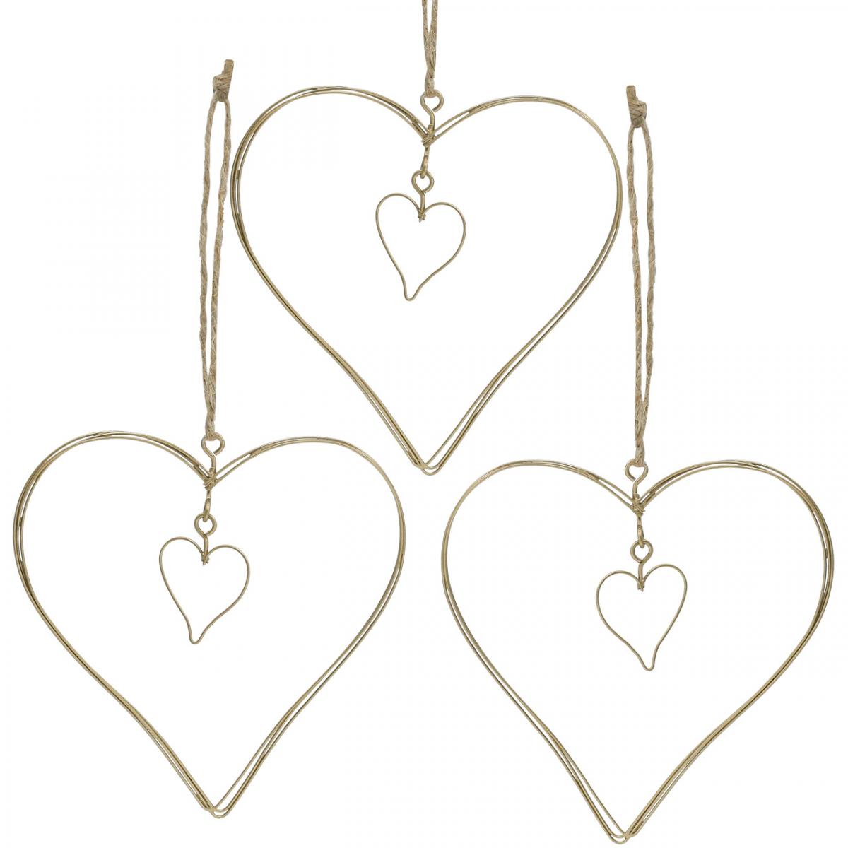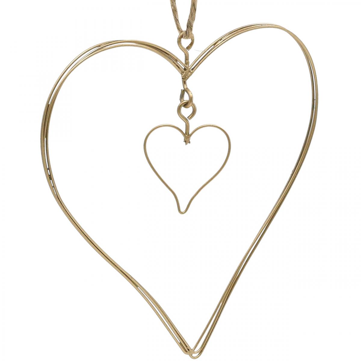 A fém szívdíszben egy kisebb fém szív medál lóg. A gyönyörű szívdísz juta zsinórral felakasztható. Így a szívet közvetlenül használhatja ablaka függő dekorációjaként vagy fali dekorációként.