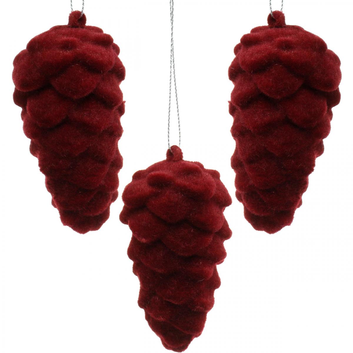 Dísztoboz bolyhos, őszi dekoráció, fenyőtoboz piros, Advent H8,5cm Ø4,5cm 8 db