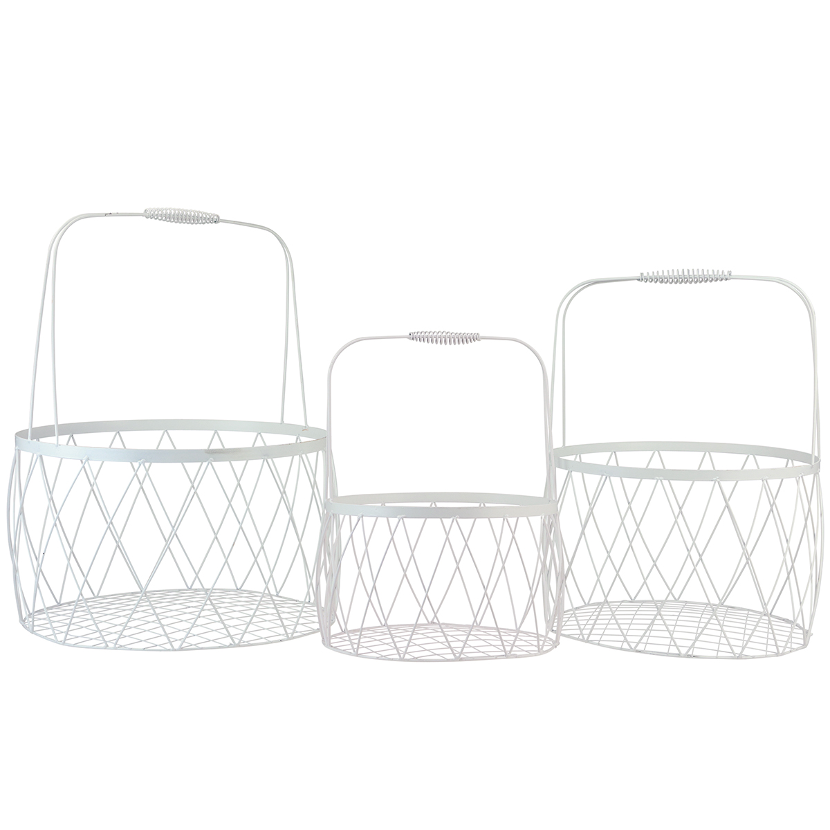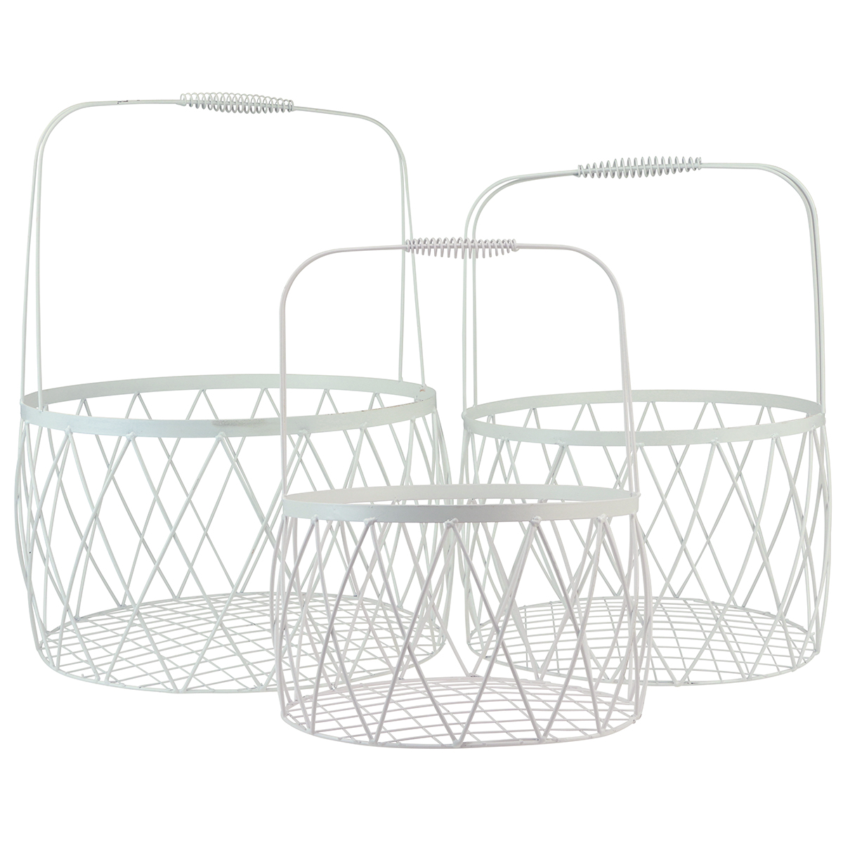 Drótkosár fogantyús kosárral fehér fém Ø25/30/35cm 3 db-os készlet