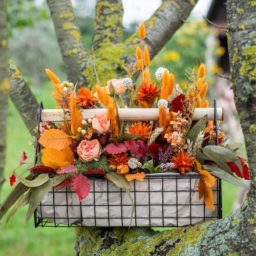 Virágos attrakcióként a drótkosarat száraz dekorációkkal is díszíthetjük virágkompozíció alapjaként. Egyszerűen használja az öltéseket, hogy virágokkal vagy levelekkel töltse meg őket, vagy fűzze át rajtuk a szalagokat.
