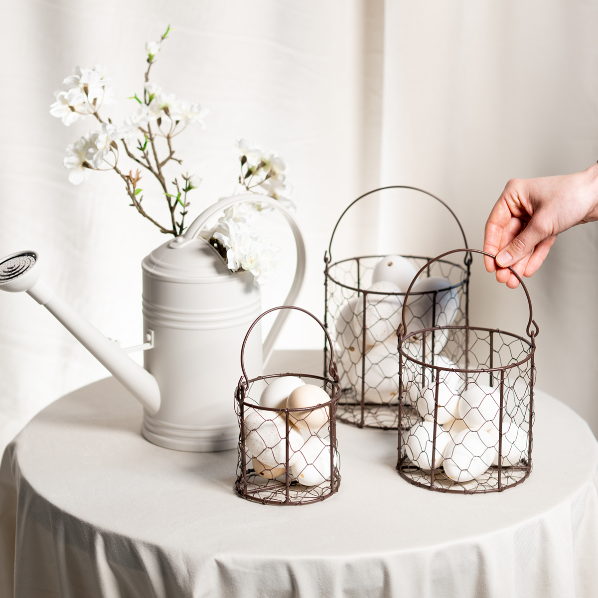 - Három különböző méretű drótkosárból álló készlet