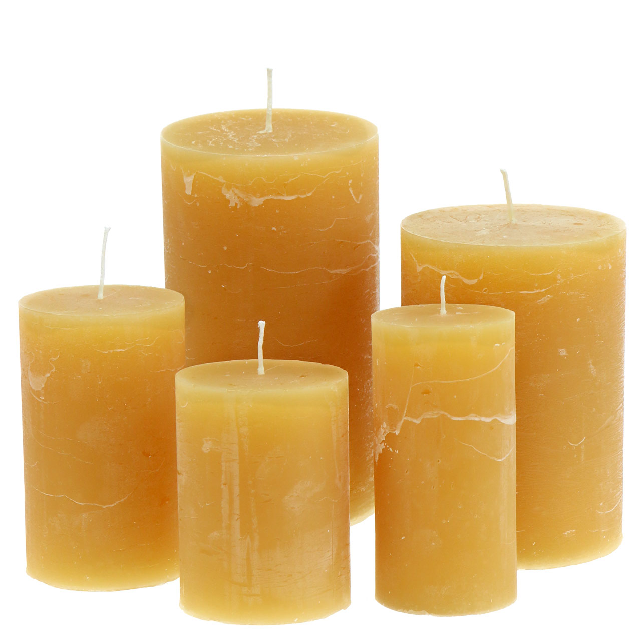 A méz színű egyszínű gyertyákkal különböző méretek közül választhat, melyek közül a jobb oldali fülből választhat. A viaszgyertyákat mindig kartonból készült készletben kapja meg. Égéskor tartsa be a nyílt tűz kezelésére vonatkozó összes biztonsági előírást.