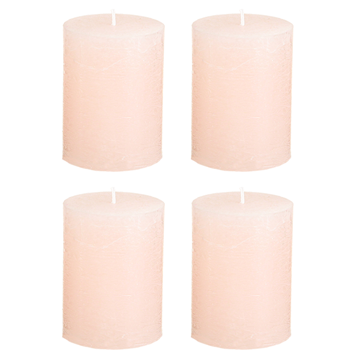 Egyszínű Rózsaszín Oszlopgyertyák, Világos Rózsaszín, 60x80mm, 4 Darabos Szett, Dekoráció