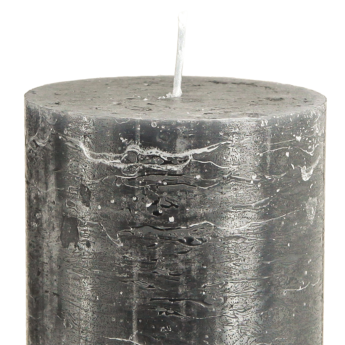 Termék neve: Elegáns antracit színű oszlopgyertyák 85x200 mm - Rusztikus dizájn, hosszú égési idő, 2 darabos szett a stílusos dekorációhoz
