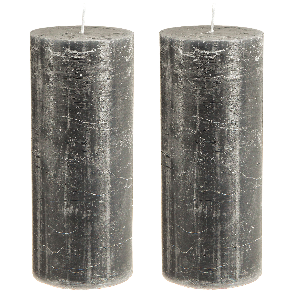 Elegáns antracit színű oszlopgyertyák 85x200 mm - Rusztikus dizájn, hosszú égési idő, 2 darabos szett a stílusos dekorációhoz