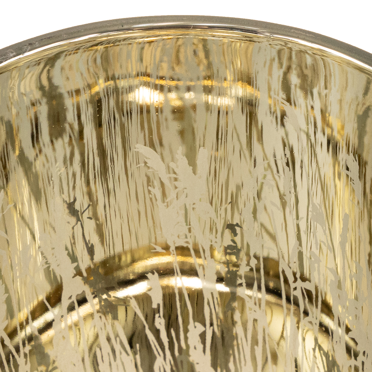 Méretének és masszív méreteinek (átmérő: 10 cm, magasság: 12,5 cm) köszönhetően helyet biztosít mécseseknek vagy kis oszlopgyertyáknak. A megvilágított üveg hatása különösen lenyűgöző a sötétített szobákban, mivel a fény átsüt a finom, arany mintákon, bonyolult árnyékokat vetve. Tökéletes romantikus világításként a hálószobában, de feltűnő benyomást kelt a nyári partikon vagy kerti összejöveteleken is. Klasszikusabb megjelenésért kombinálható visszafogott színekkel és természetes anyagokkal, például fával vagy lenvászonnal.