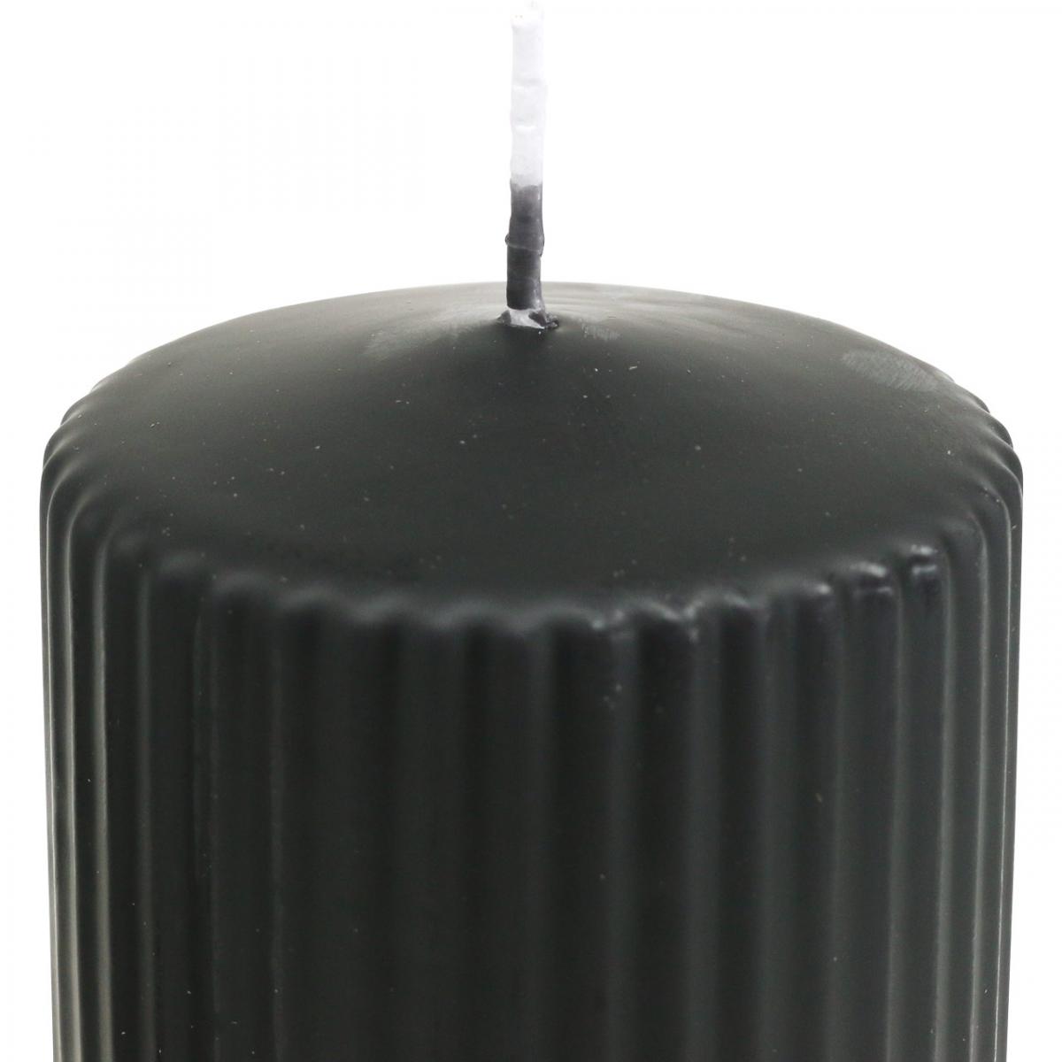 Elegáns fekete oszlopgyertyák barázdált mintával, 70/130 mm, 4 darabos készlet - Sokoldalú díszgyertyák adventre és ünnepekre