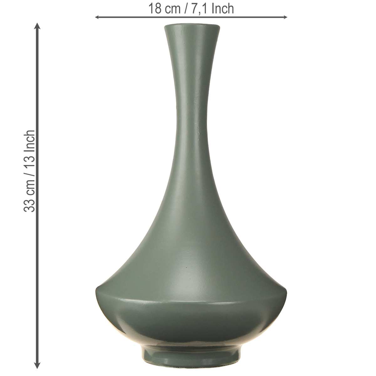 Ez a díszváza harmonikusan ívelt formájával és kiváló minőségű fém kidolgozásával rabul ejti a tekintetet. A matt zöld felület egyszerre visszafogott és elegáns, kiemelve modern jellegét. Akár étkezőasztal központi elemeként, akár egy komód díszeként, akár egy irodai asztal stílusos elemeként használják, sokoldalúsága nélkülözhetetlen kiegészítőjévé teszi bármely otthonnak. 33 cm magas méretével tökéletes ahhoz, hogy bármilyen helyiségbe zökkenőmentesen illeszkedjen, miközben mégis hangsúlyos marad. Azok, akik értékelik a minimalista esztétikát, imádni fogják – de más dísztárgyakkal kombinálva is gyönyörűen mutat.