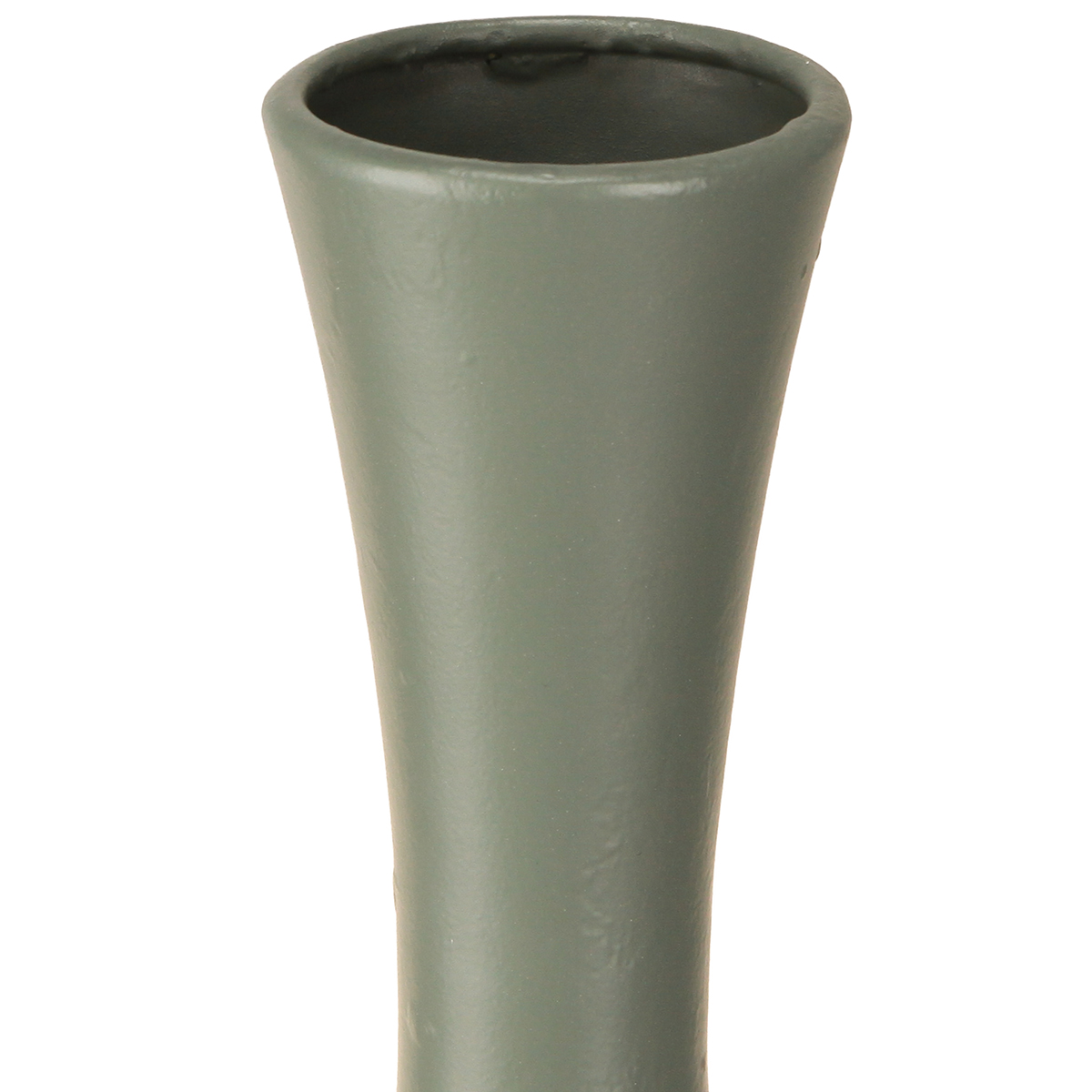 Tökéletes friss virágkompozíciókhoz, szárazcsokrokhoz, vagy egyszerűen önálló dizájntárgyként: ez a váza mindenféle ötletre nyitott. Különösen jól illik természetes anyagokhoz, mint a fa, a kerámia vagy az üveg. Helyezze egy tálalószekrényre vagy könyvespolcra, és kombinálja más zöld kiegészítőkkel, például párnákkal vagy növénysarokkal, hogy harmonikus megjelenést hozzon létre. Az egységes összhatás érdekében javasoljuk az összeillő tárgyak, például egyszerű gyertyatartók vagy dísztálcák használatát.