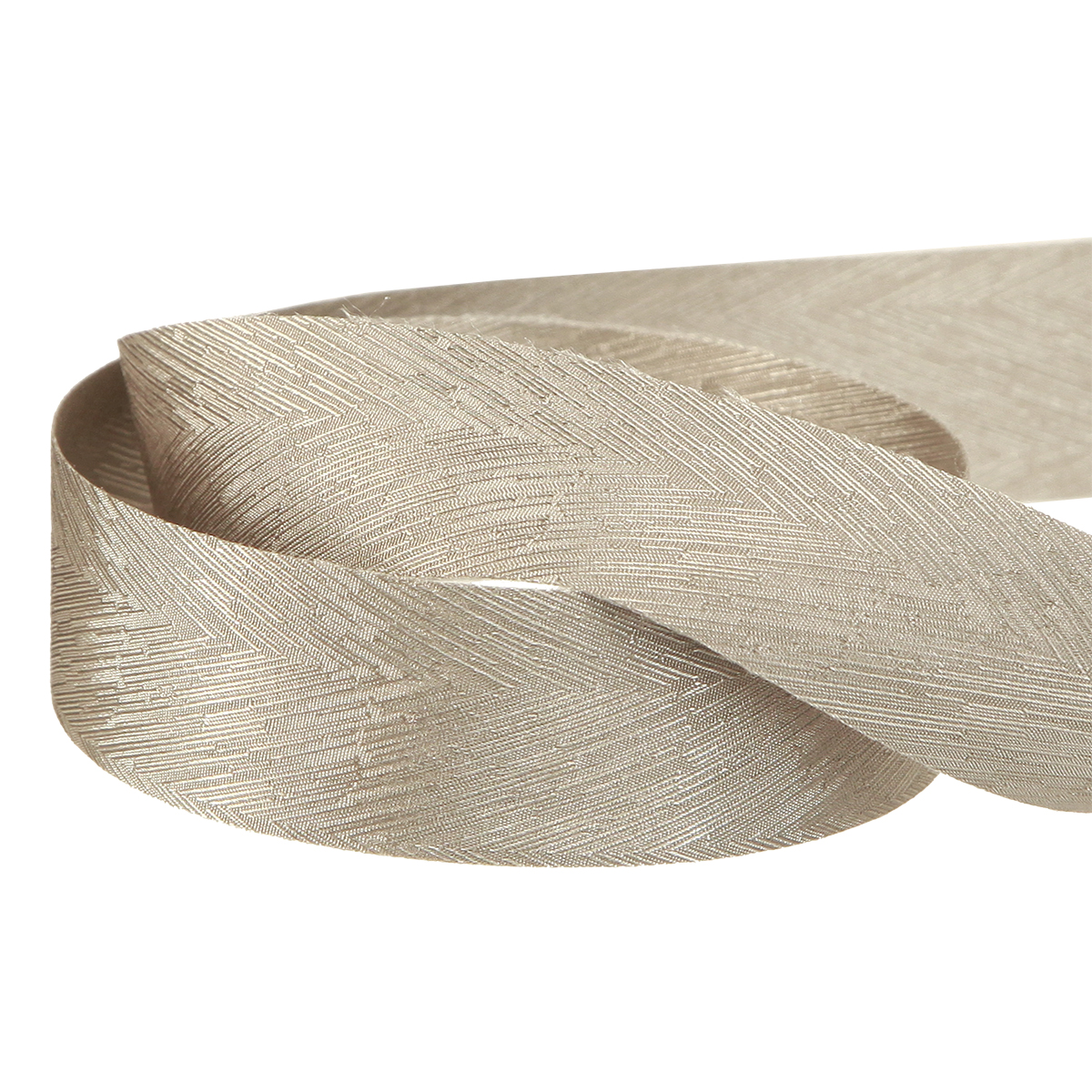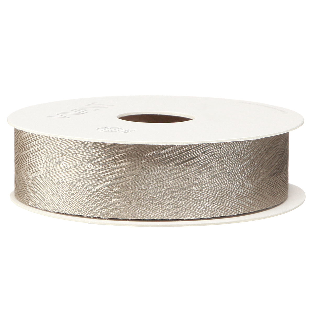 Fedezze fel a finom ezüst selyemszalagot elegáns tollmintás kivitelben, amely csillogó eleganciájával finomít minden ünnepi elrendezést. Ez a kiváló minőségű ezüst selyemszalag 25 mm széles és 15 méter hosszú, ideális sokoldalú dekorációs lehetőségekhez és ünnepi alkalmakhoz.
