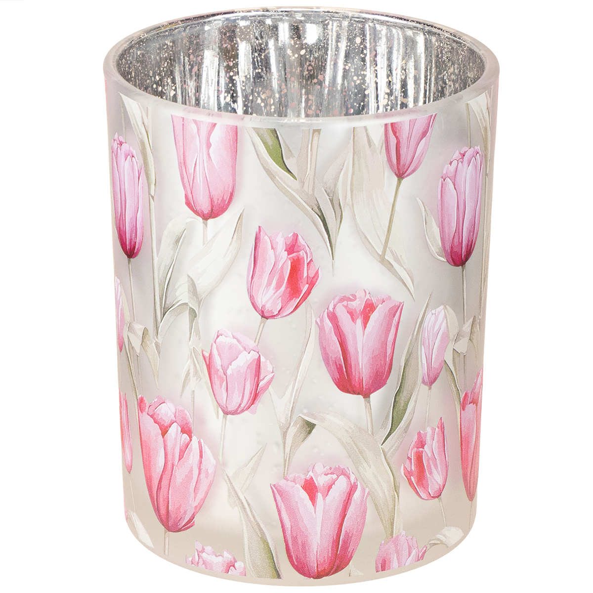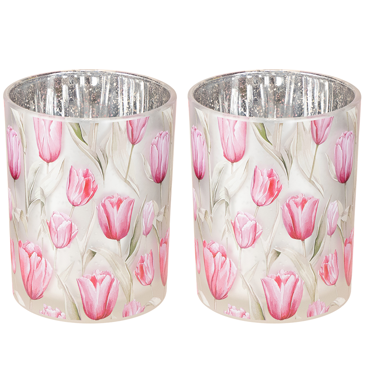 Termék neve: Elegáns, tulipán motívumos lámpás hangulatos tavaszi dekorációhoz, 12,5 cm, 2 darab.