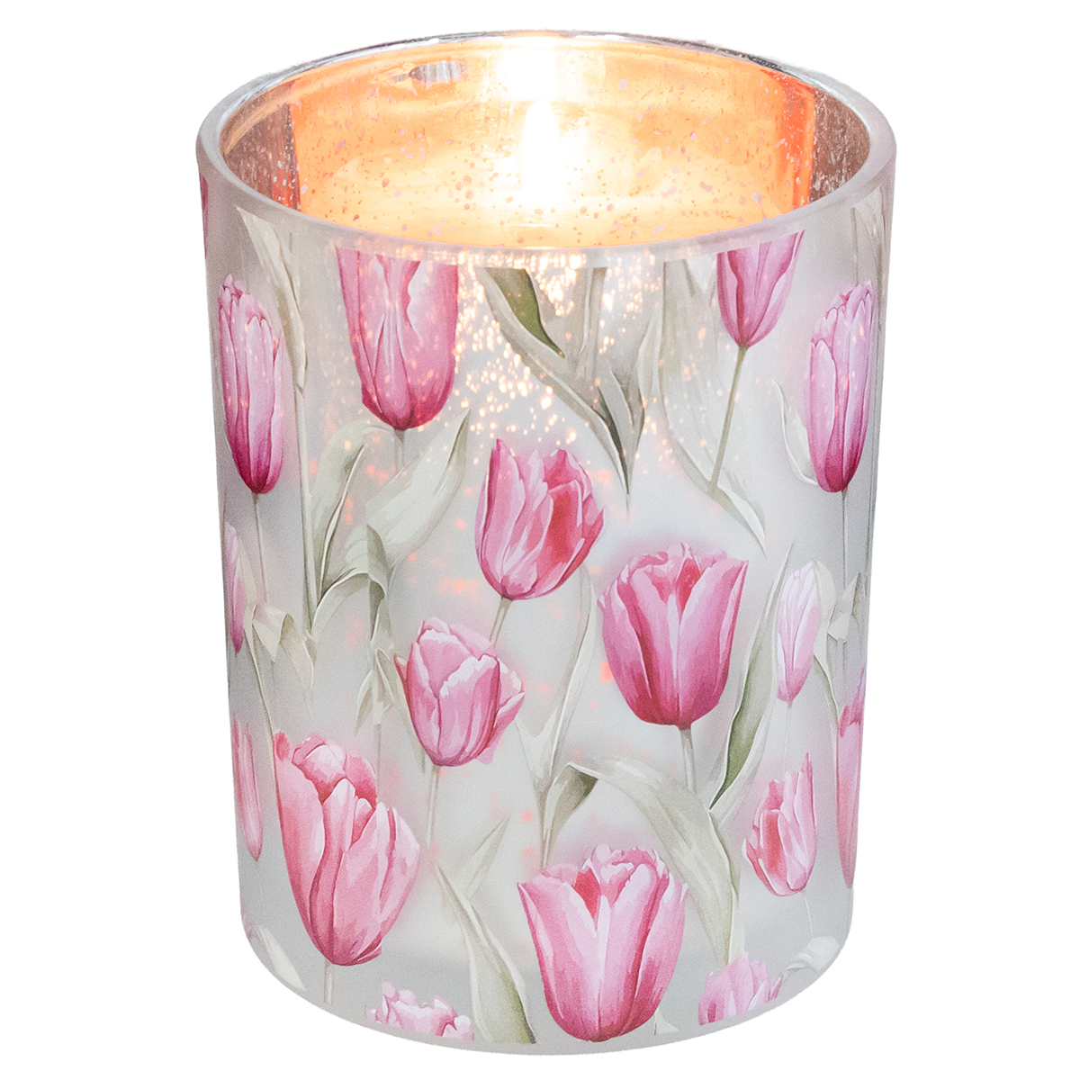 Elegáns, tulipán motívumos lámpás hangulatos tavaszi dekorációhoz, 12,5 cm, 2 darab.