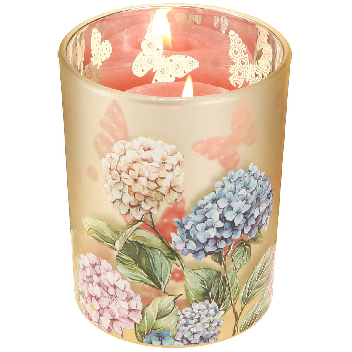 A finom hortenzia motívum lágy pasztell rózsaszín, kék és bézs árnyalataiban különösen feltűnő, és kiemeli a gyertyatartó elegáns stílusát. Könnyedén illeszkedik különféle lakberendezési stílusokba – legyen szó akár vidéki, shabby chic vagy modern bohém stílusról. Helyezd magad kényelembe, és élvezd a fény varázslatos pillanatait, amelyek a boldogság kis szigeteit hozzák létre a mindennapokban!