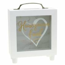 A praktikus bőrönd formájú esküvői perselyek kilátóablakkal és tetszetős esküvői motívumokkal tökéletesek a násznép tartalmas és üdvözlő ajándékának a menyasszony és a vőlegény számára.