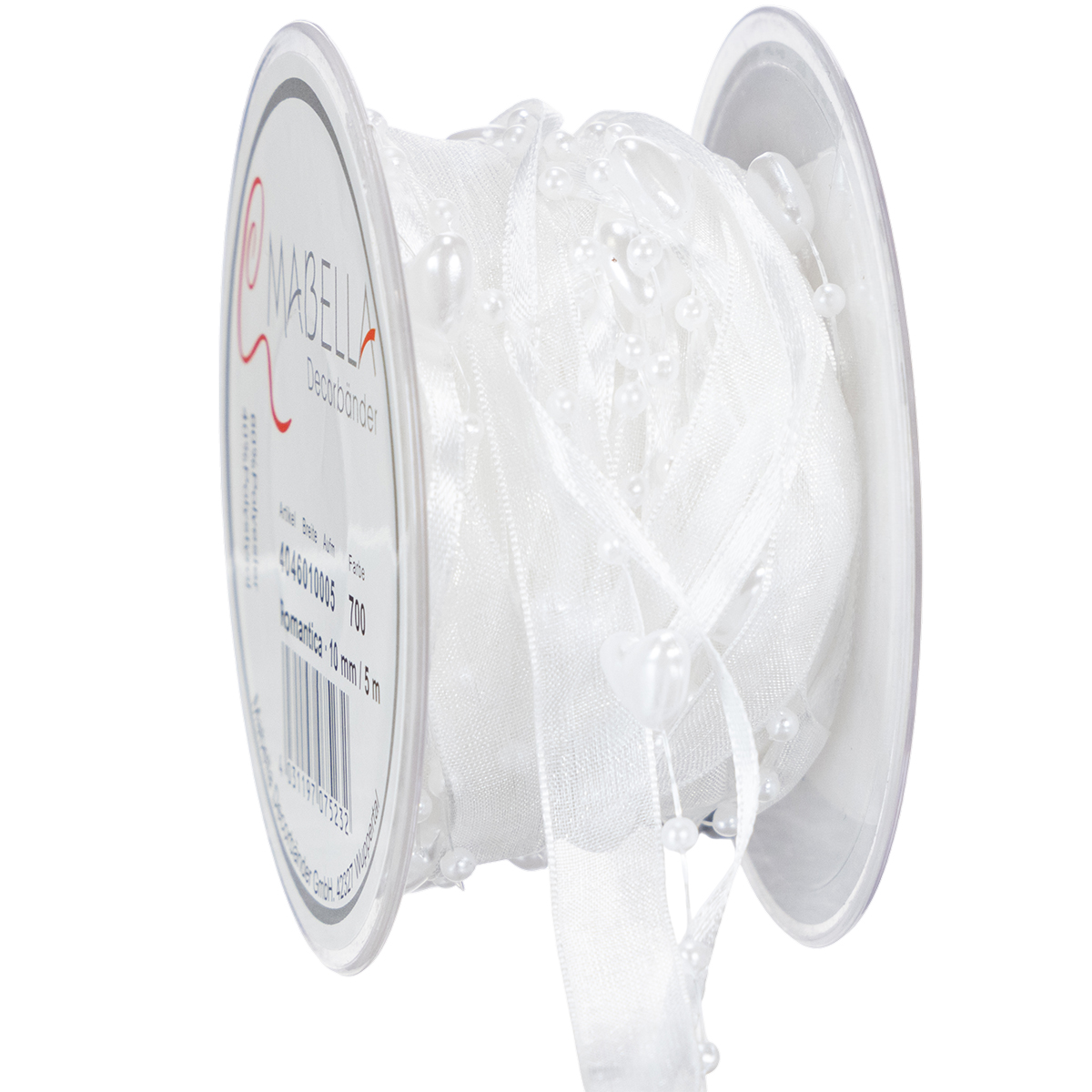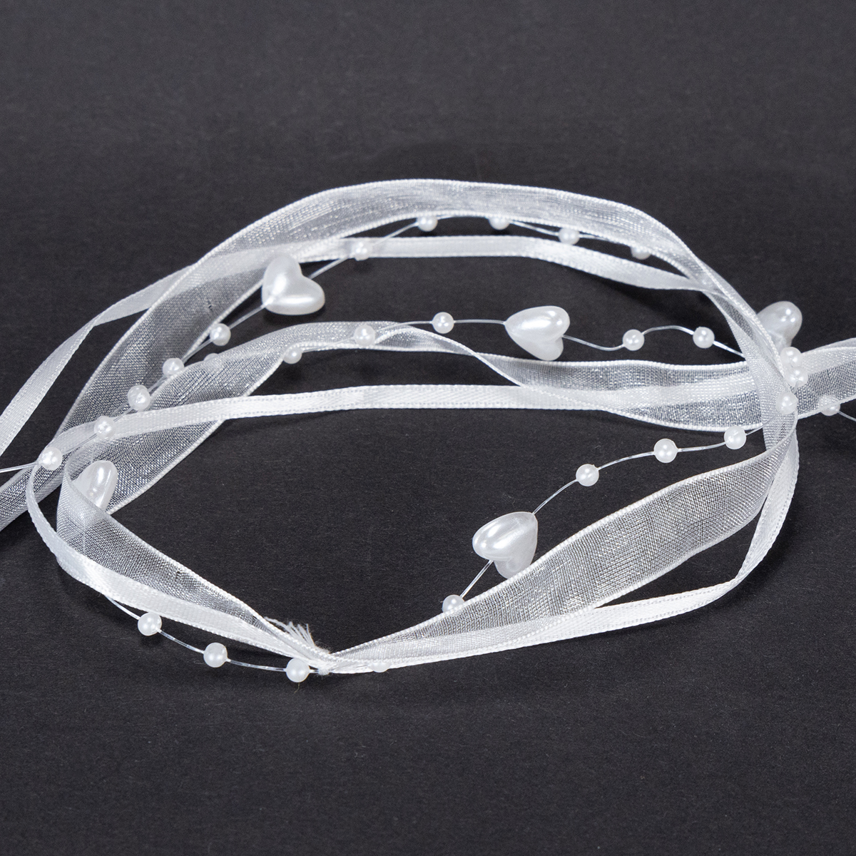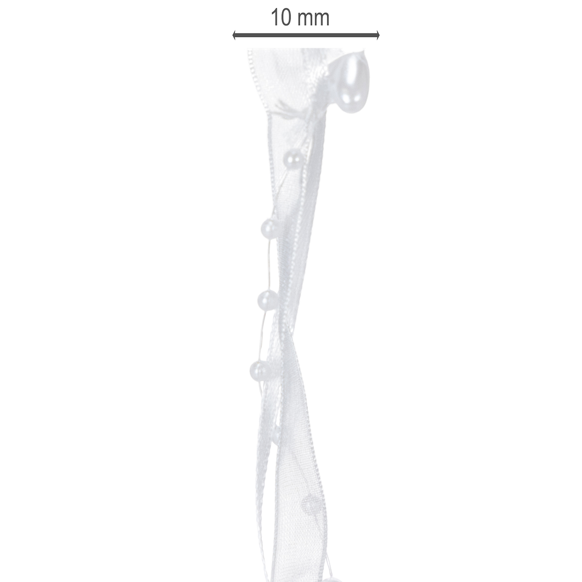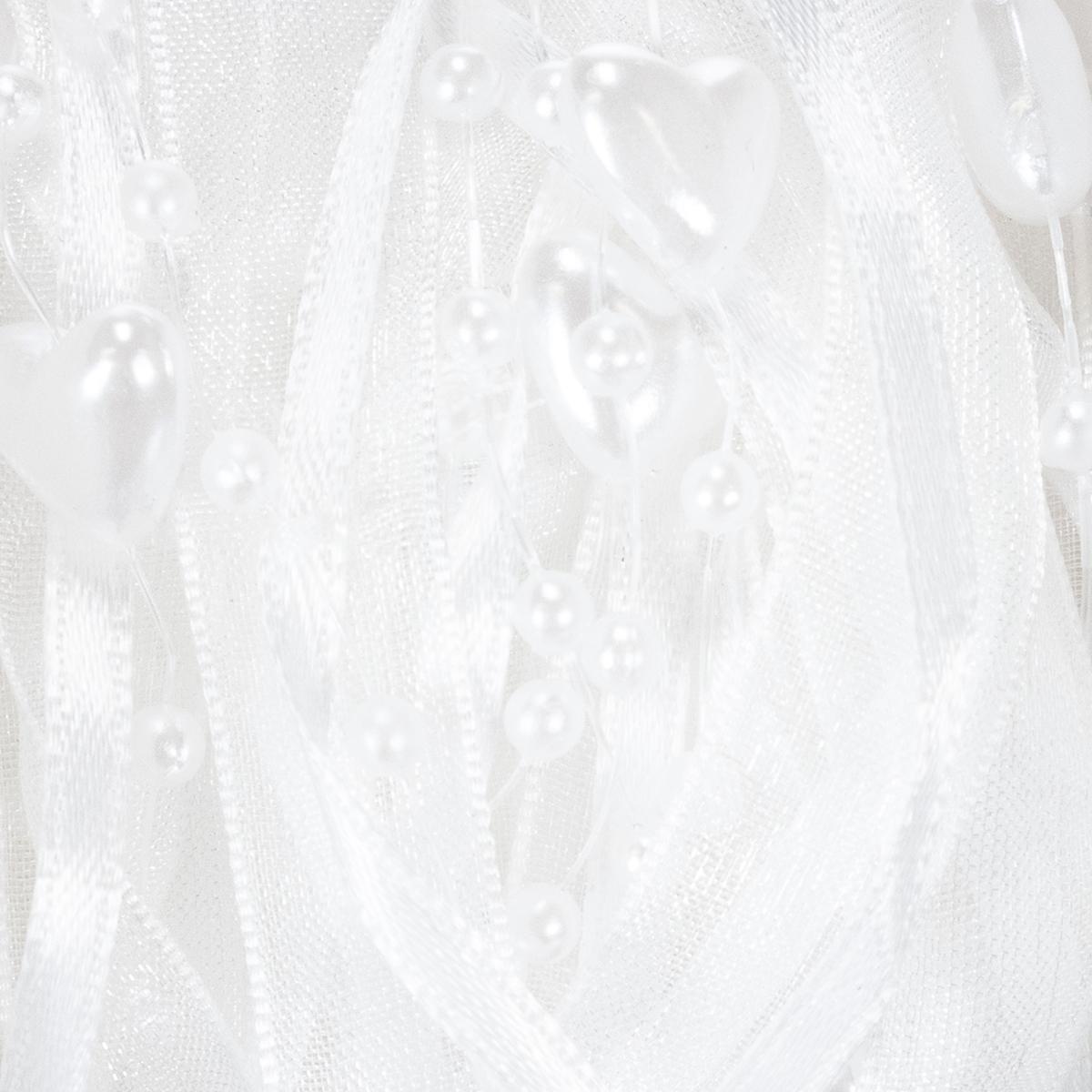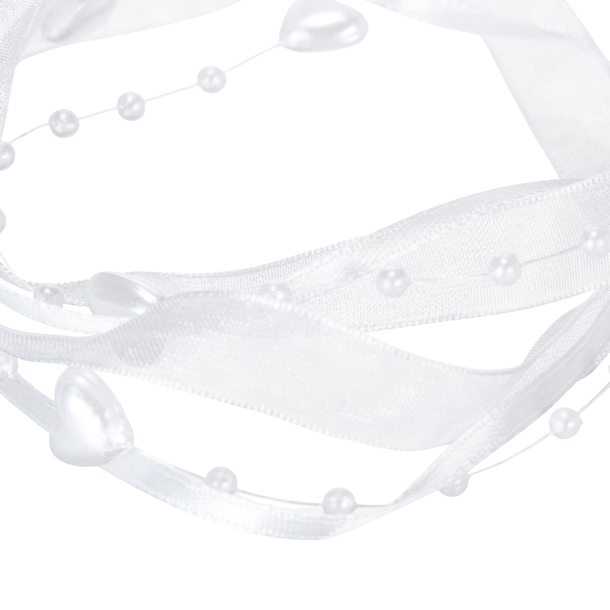 Termék neve: Esküvői dekorációs organza szalag fehér 10mm x 5m szívekkel és gyöngyökkel