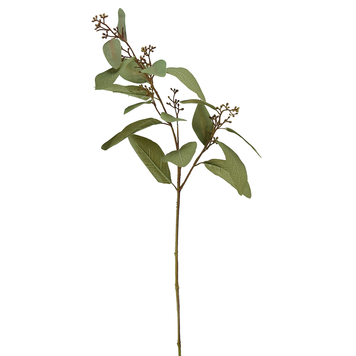 Ez a valósághű mesterséges ág hihetetlenül valósághűen hozza létre a nagy eukaliptusz leveleket és bimbókat. A mesterséges eukaliptusz ág levelei is igazinak érződnek. A vékony ág nagyon könnyen hajlítható, ezért sokféle művirág dekorációban használható.