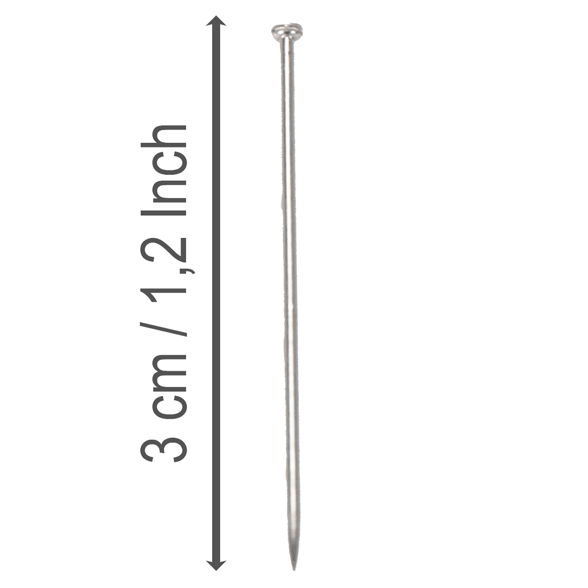 Ezüst színű, nikkelezett vasból készült, körülbelül 30 mm-es csapjaink tökéletes választások mindazok számára, akik tartós és sokoldalú rögzítőket keresnek. Ezek a tűk nem csak kiváló minőségű kidolgozásukkal nyűgöznek le, hanem fényes, ezüstös felületükkel is, amely elegáns megjelenést kölcsönöz minden projektnek, de a kis fejnek köszönhetően elrejthetők az ágak és a levelek között is. Legyen szó kézműveskedésről, díszítésről vagy virágkötői munkáról – ezek a tűk kiváló fogást biztosítanak. Mivel a nikkelezett csapok rozsdaállóak, ideálisak beltéri és kültéri használatra. Különösen a florisztikai tervezésben használják őket, legyen szó virágkompozíciók készítéséről vagy virágcsokrok létrehozásáról és rögzítéséről. Az 500 g-os tömeges kiszerelés elegendő tűt kínál számos projekthez, így bármikor kreatív lehet. Hagyja magát meggyőzni ezeknek a kis segítőknek a minőségéről és sokoldalúságáról!