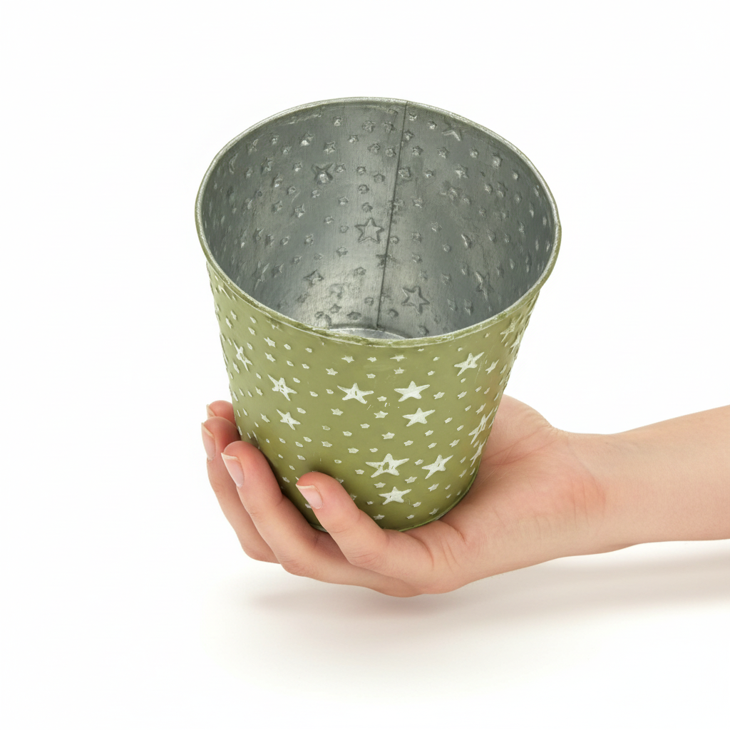 - Csillagokkal domborított fém virágcserép