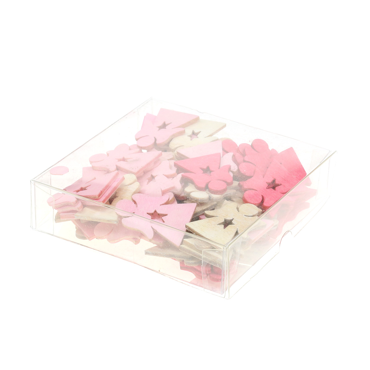 A rózsaszín, rózsaszín és fehér locsoló fa angyalkákat 72 darabos készletben, műanyag dobozban szállítjuk Önnek. Méretük körülbelül 4 centiméter. Mindegyik színből 24 példány található.