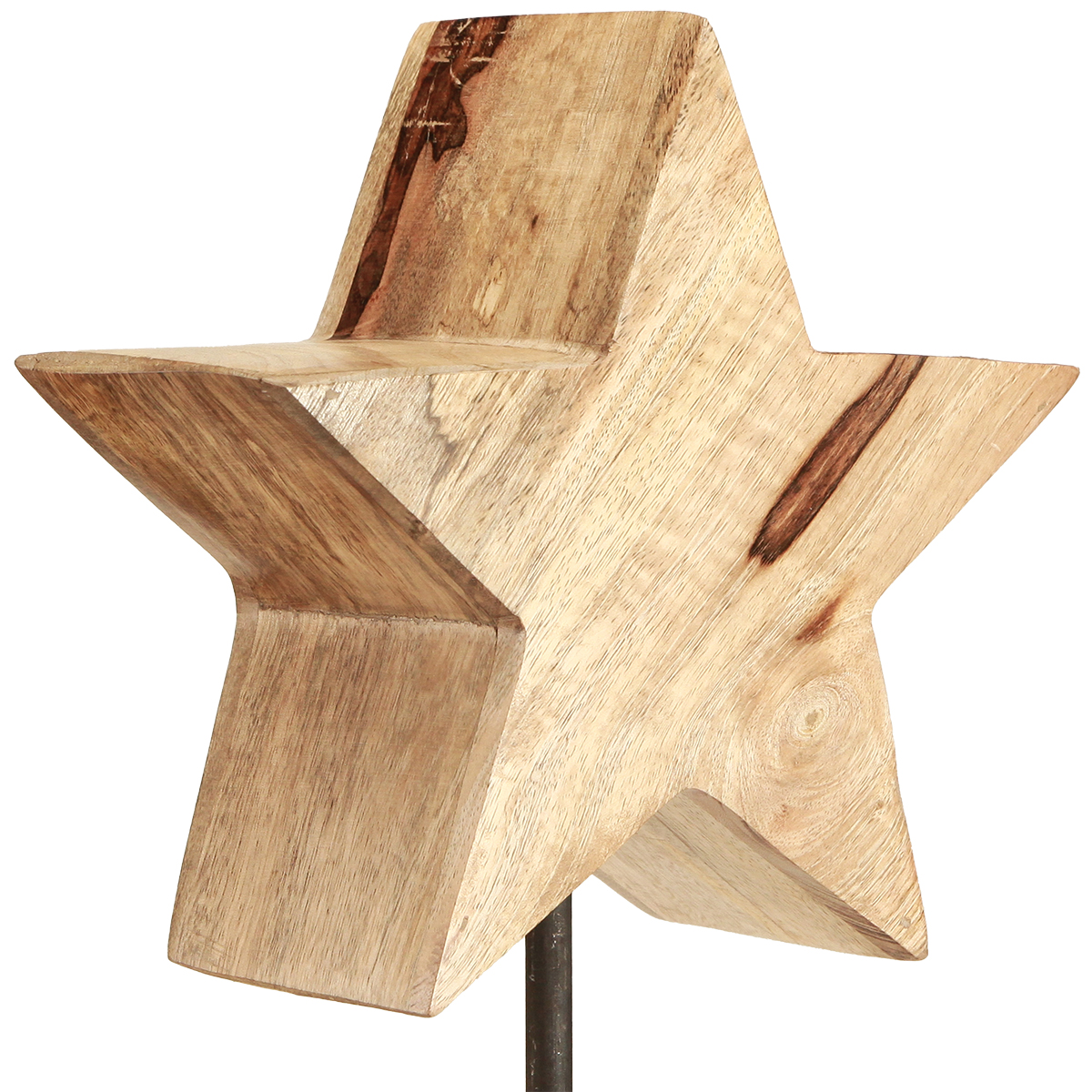 Minden egyes dekoratív fából készült csillagunk a pálcákon valóban egyedi, mázas mangófából készül, egyedi erezetű. A természetes anyag és a masszív fémrúd kombinációja, amely elegánsan belefolyik a fa alapba, vonzó összképet varázsol a vidéki ház stílusában. A csillag lazán ül a rúdon, mozgatható és tetszés szerint beállítható. Körülbelül 20 cm x 50 cm-es méretével a csillag nem hagyható figyelmen kívül, és elbűvölő hangsúlyt fektet bármelyik ünnepi étkezőasztalra vagy a kirakat kialakítására.