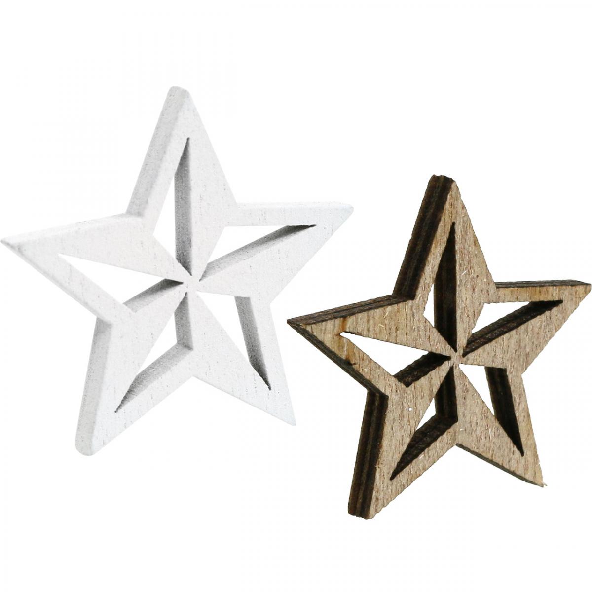 Fa csillagok dekoráció szórvány dekoráció karácsonyi fehér/natúr 3,5cm 48 db
