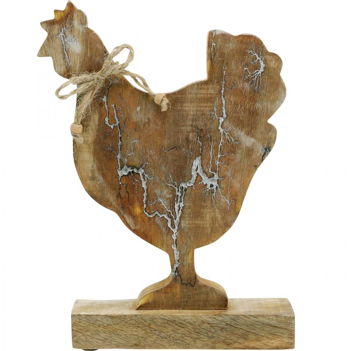 Fa csirke, tavaszi dekoráció, húsvéti figura natúr, fehérre mosott H26cm