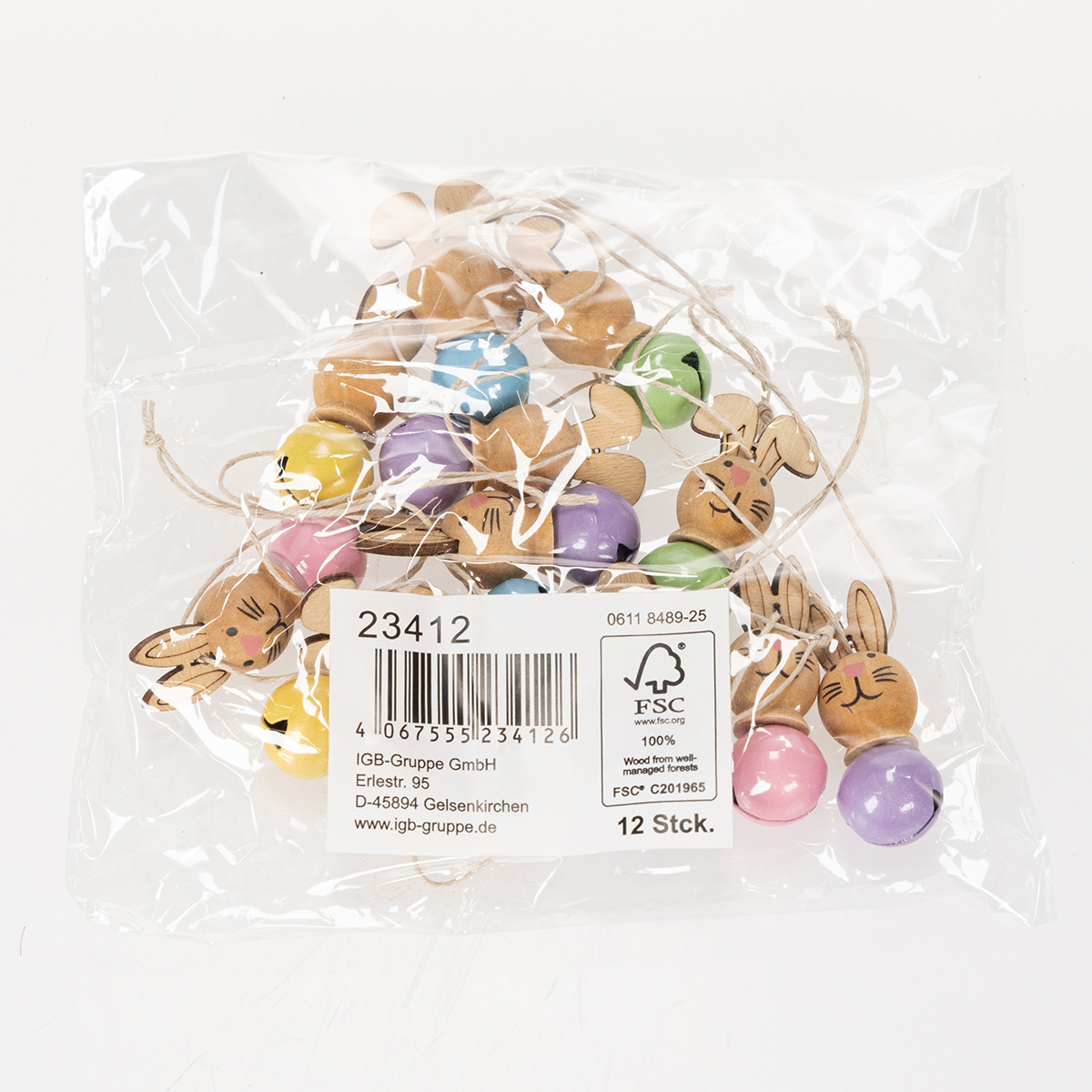 Nyuszi díszes medáljaink a bájos dizájnt sokoldalú díszítési lehetőségekkel ötvözik. Mind a tizenkét medál kiváló minőségű fából készült, és körülbelül 4 cm méretű – ideális méret ahhoz, hogy bármilyen szobába könnyedén illeszkedjen. A nyuszi arcokat nagy odafigyeléssel készítették el a részletekre: kis orr, vidám szemek és finom vonalak – egyszerűen imádnivalóak! Elbűvölő kiegészítői a kis színes fémcsengők, öt pasztellárnyalatban. Játékos kiegészítői a darabnak, és a legkisebb mozdulatra is halk csengőhangot adnak ki.