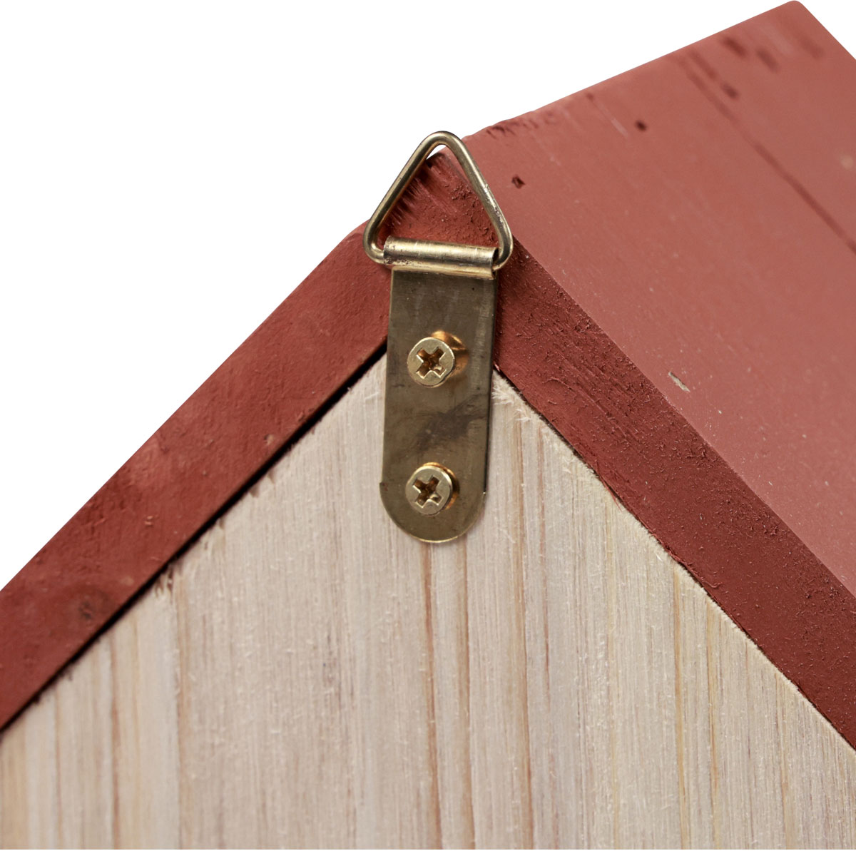 Helyezze a fészekdobozt egy csendes helyre, magasan a talaj fölé, hogy megvédje az új lakókat a ragadozóktól. A faház hátsó falán összecsukható fülekkel van felszerelve.
