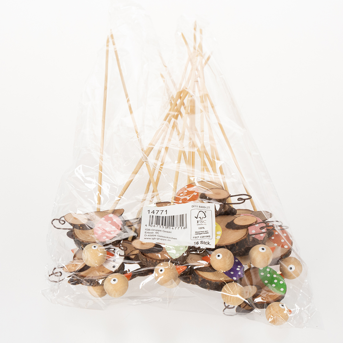Fa madárkerti karók kreatív tavaszi és nyári dekorációhoz, 33 cm, 16 darab