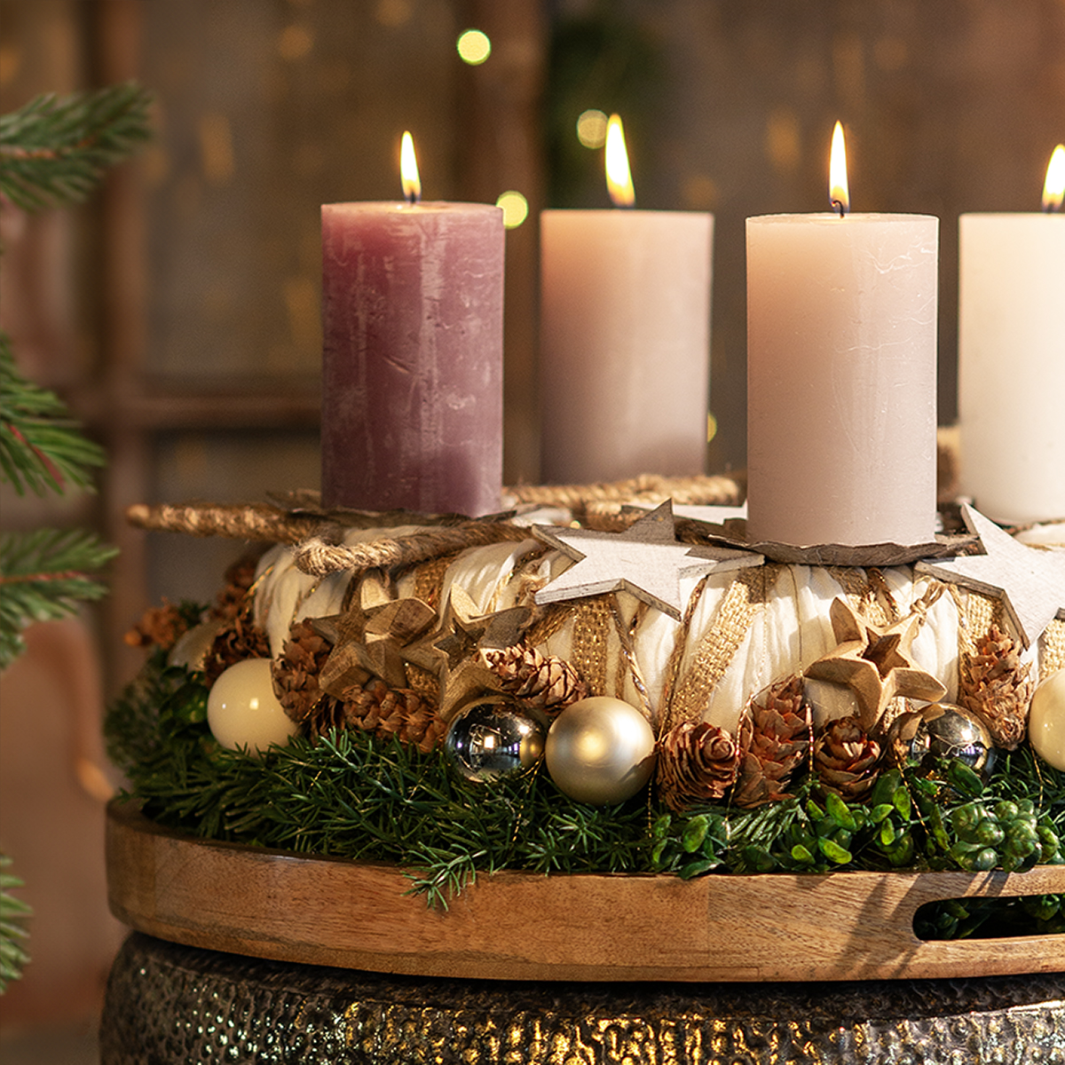 Klasszikusként felakaszthatod a mikulásvirágokat, hogy kiegészítsd hagyományos karácsonyfadíszedet. A fa medálok is harmonikusan mutatnak narancsszeletekkel és kúpokkal az ajtókoszorún. De modern adventi díszeket is tervezhetsz ezekkel a kiváló minőségű fából készült csillagokkal.