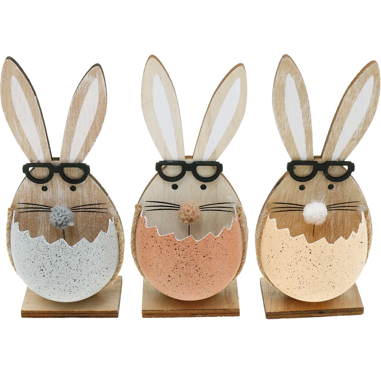 Termék neve: Fa nyúl tojásban, tavaszi dekoráció, szemüveges nyulak, húsvéti nyuszik 3db
