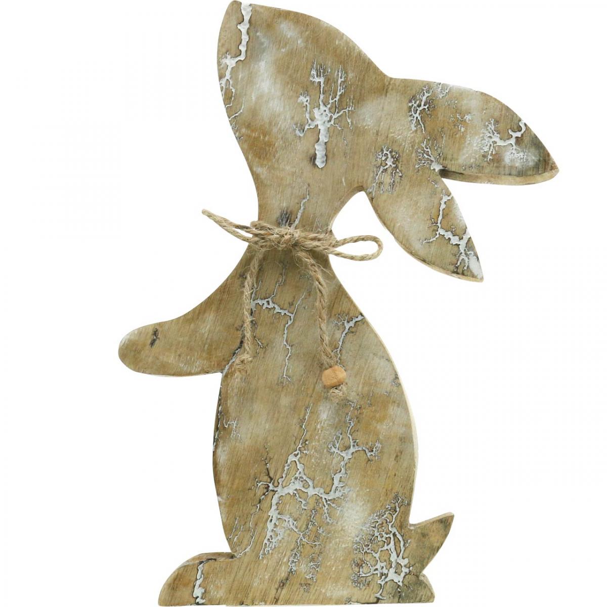 Termék neve: Fa nyuszi, tavaszi, húsvéti nyuszi ülő, húsvéti dekoráció natúr mintával, fehérre mosott H26cm