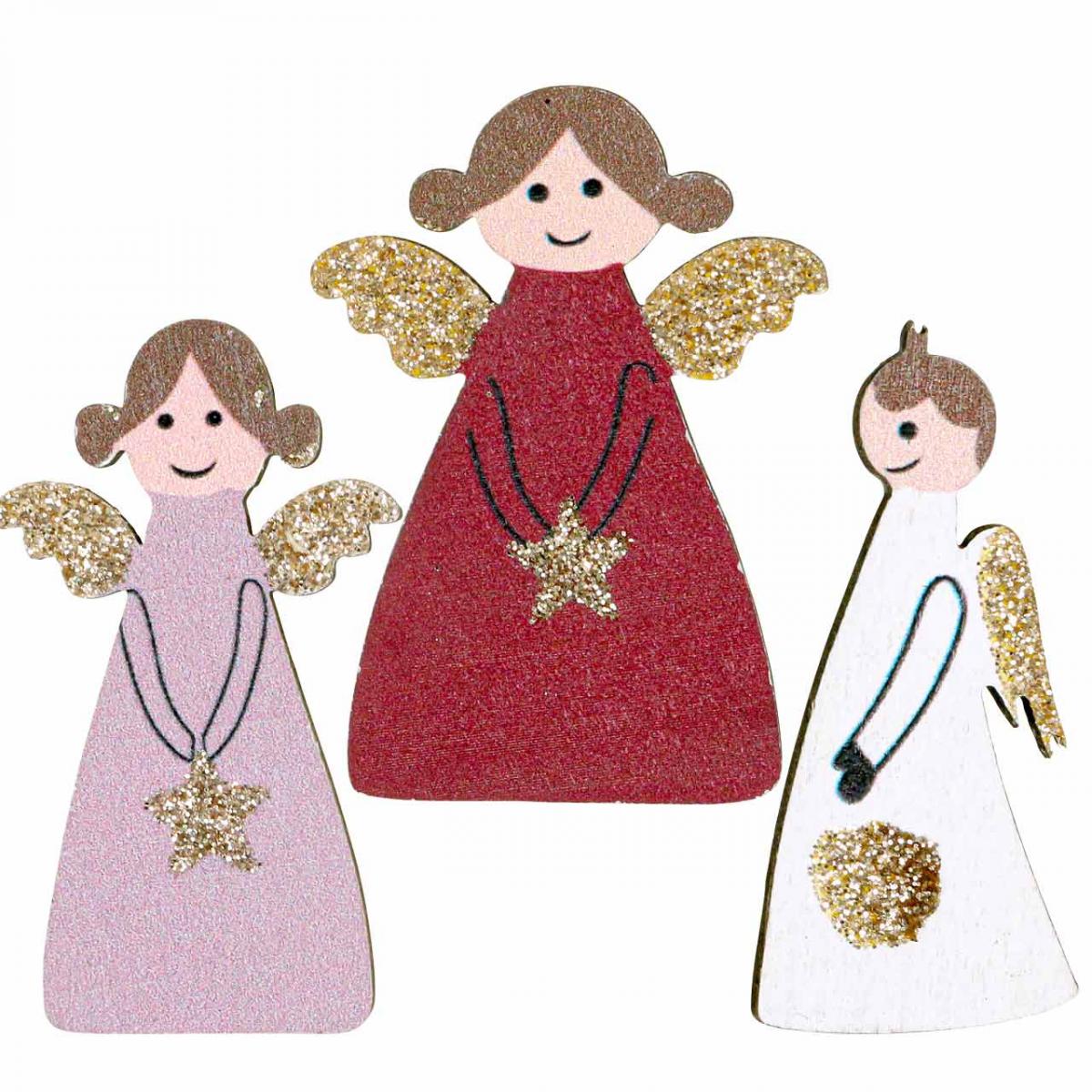 A vékony falemezek filigrán körvonalait nagyon szépen kidolgozták. A szóró angyalok három különböző formában és színben kaphatók. Ezen kívül a szárnyak és a kis csillagok, amelyeket a dekó angyalkák a kezükben tartanak, varázslatos csillogással örvendeztetnek meg.