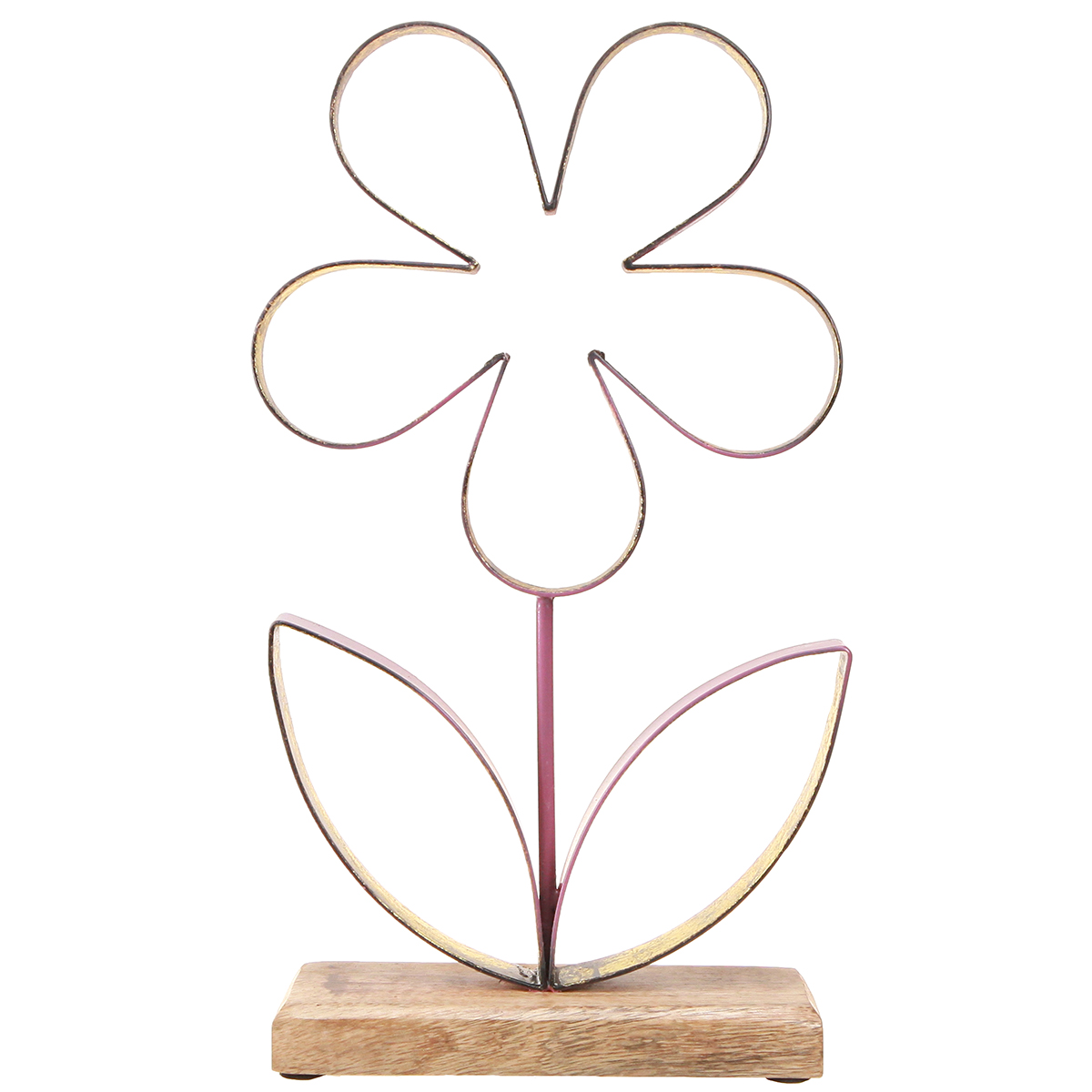 Fából készült fém dekoratív virág az alapon régi rózsaszín arany H35cm