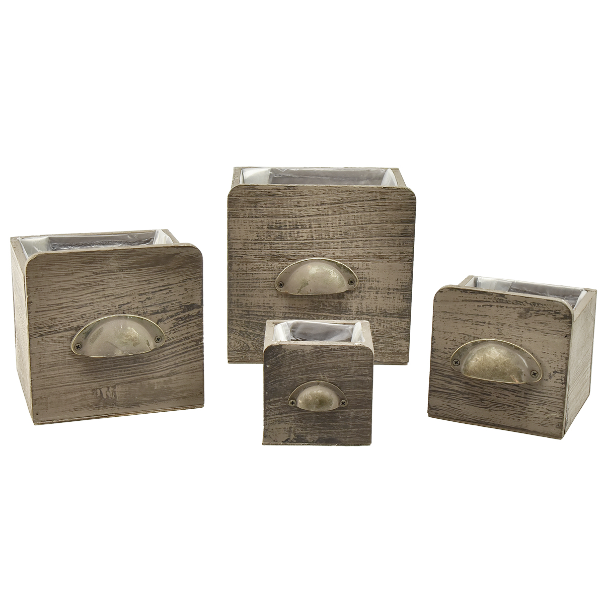 A 4 szüreti fa fiókból álló készlet több, mint egy tárolóhely – a stílus és a funkcionalitás kifejezése. A praktikus fogantyúk megkönnyítik a fiókok kihúzását, míg a belső fólia lehetővé teszi a valódi növények közvetlen ültetését. Barnára törölt fa minden szettnek egyedi karaktert ad, és a rusztikus belsőépítészet elengedhetetlen részévé teszi.