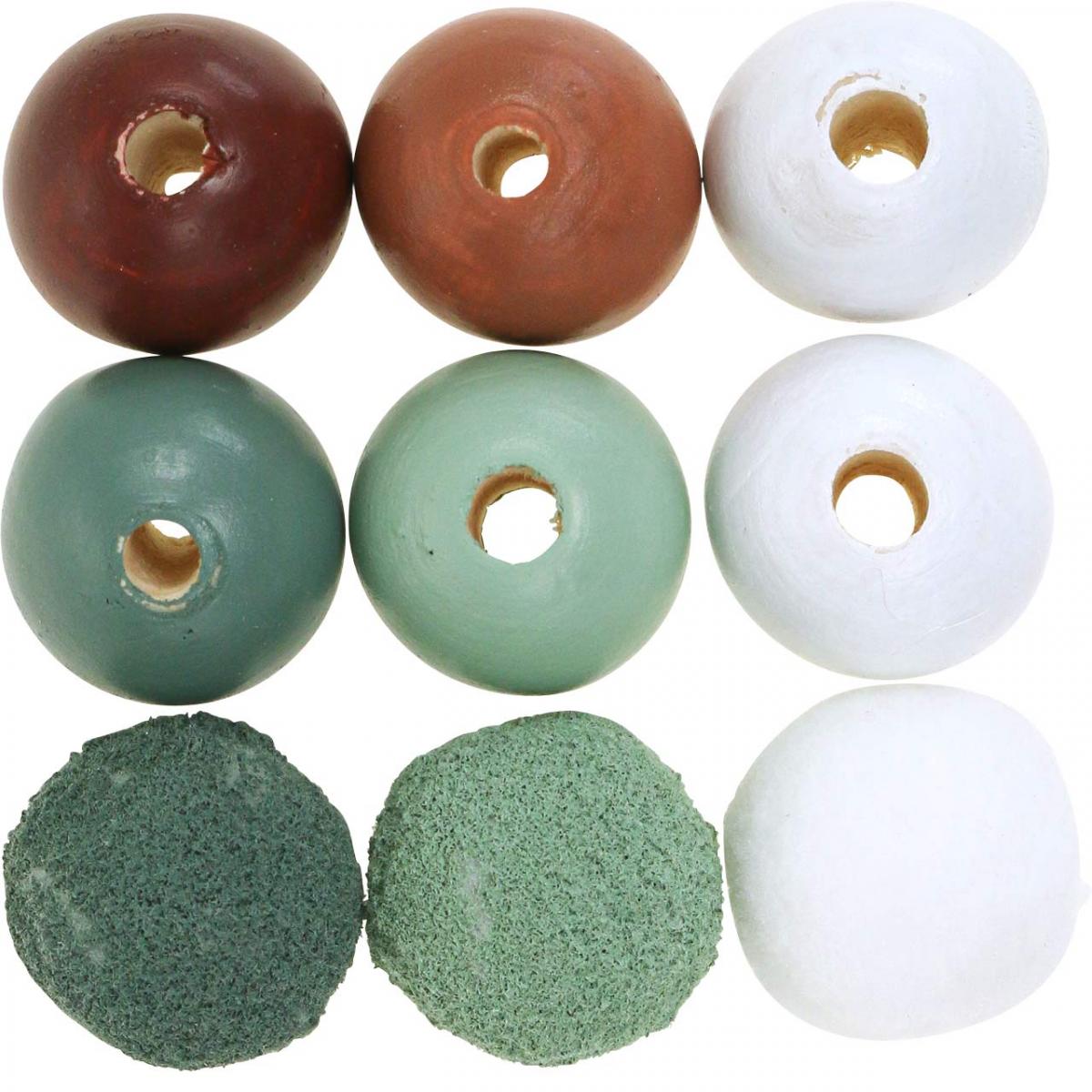 Fagyöngyök fa golyók kézműves munkákhoz zöldre válogatva Ø3cm 36db