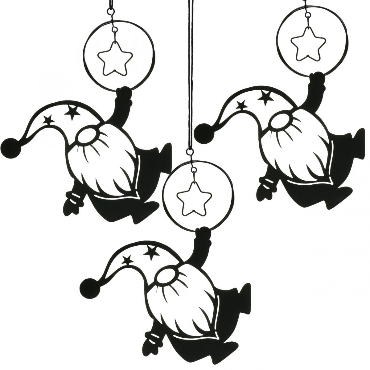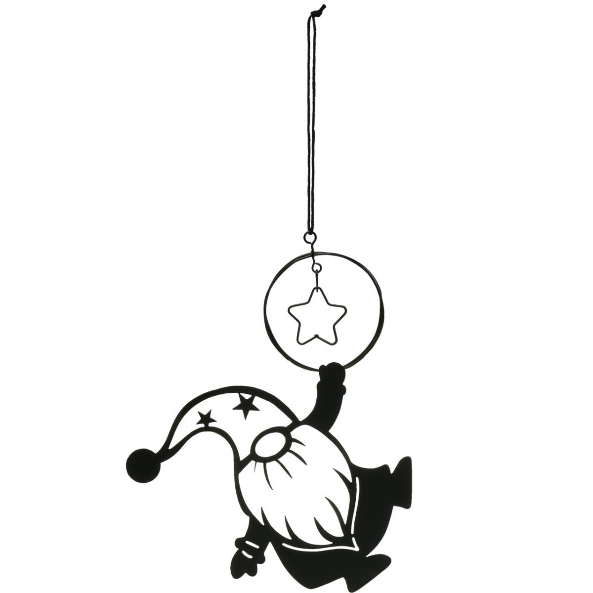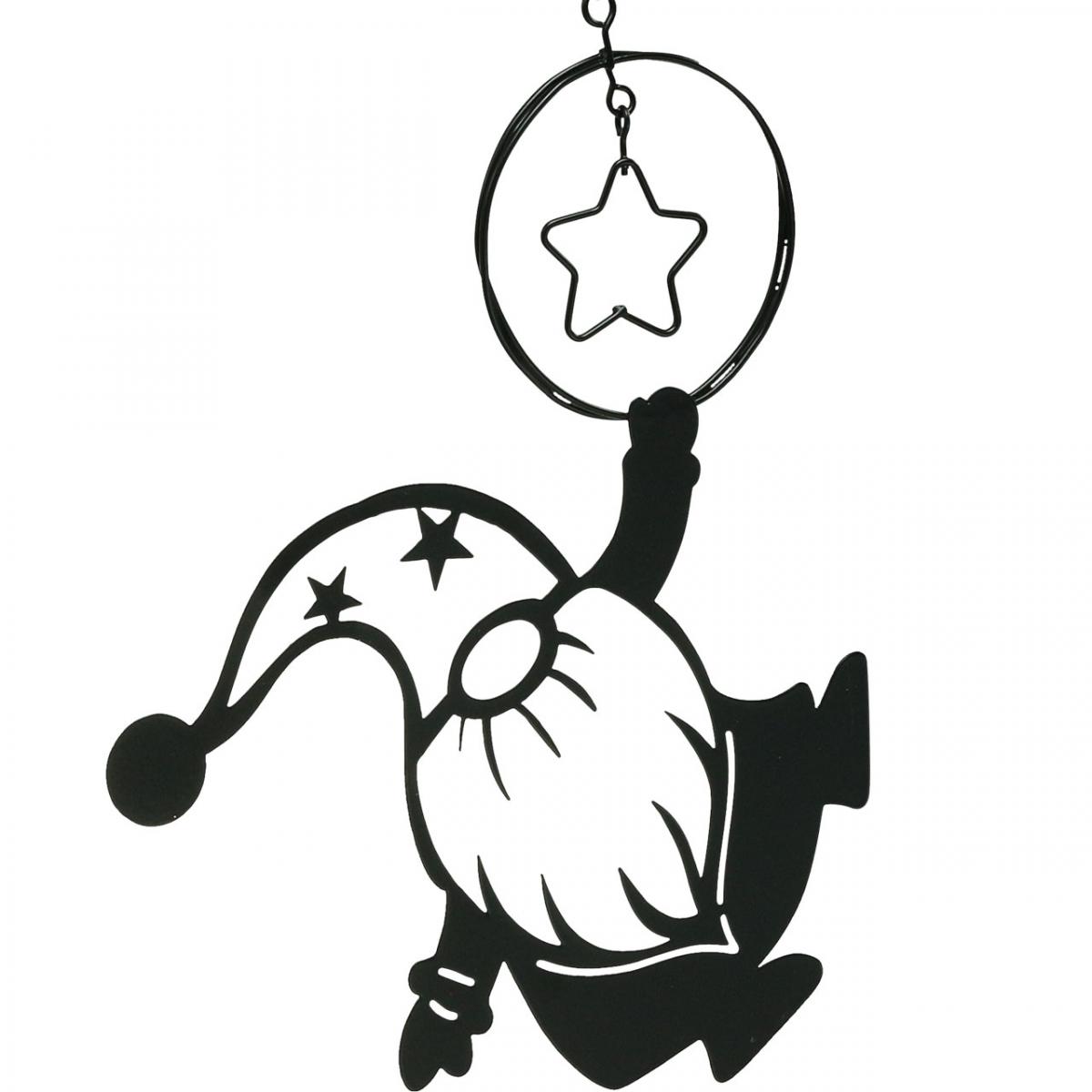 Fali dekoráció fém fekete gnóm csillag 15×17cm 3 db