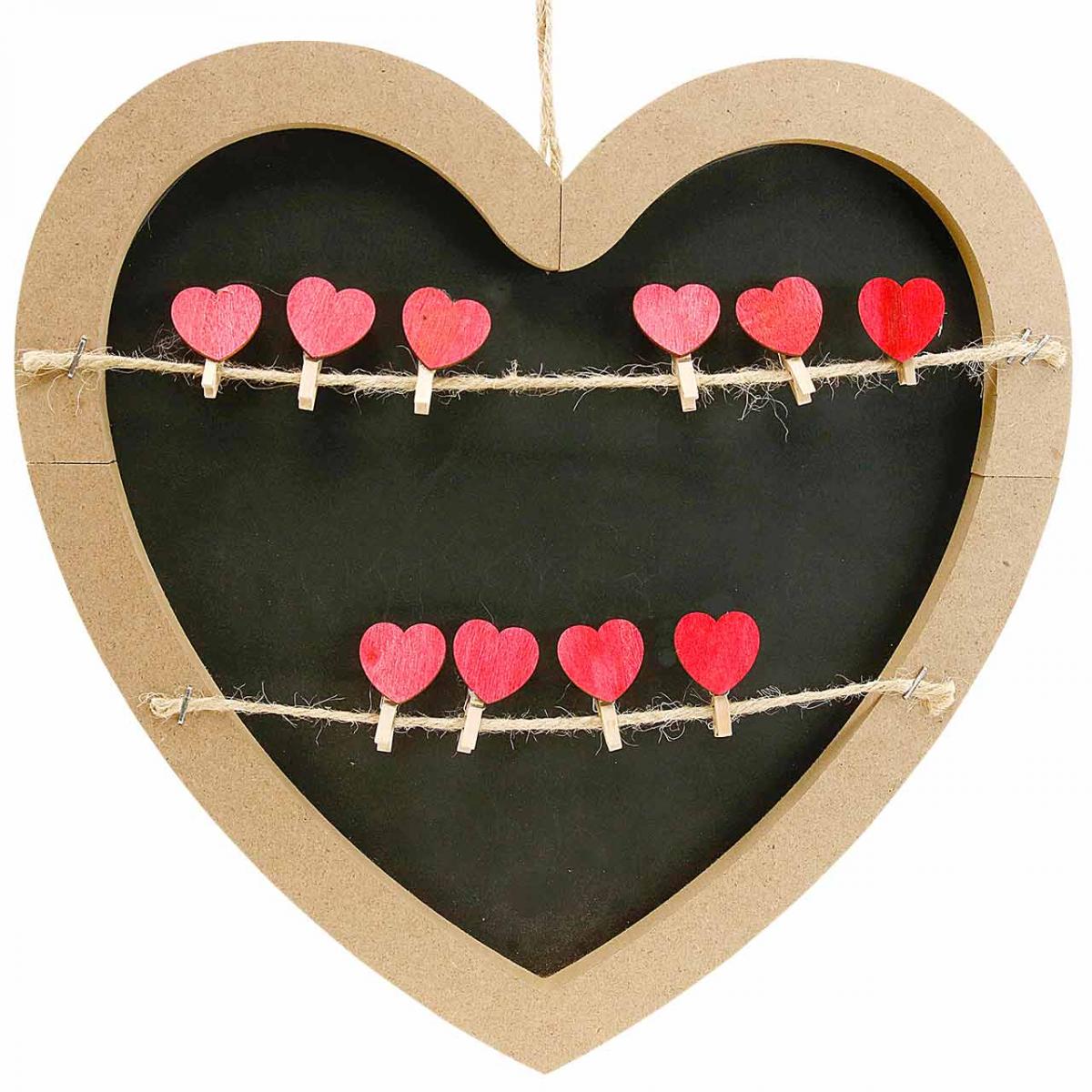 A felakasztható díszszív széle természetes - így az MDF fát kívánsága szerint festheti, díszítheti decoupage-szal vagy virágokkal. A 10 fa klipsz, mint egy szív, tipikus piros színben kapható.
